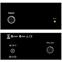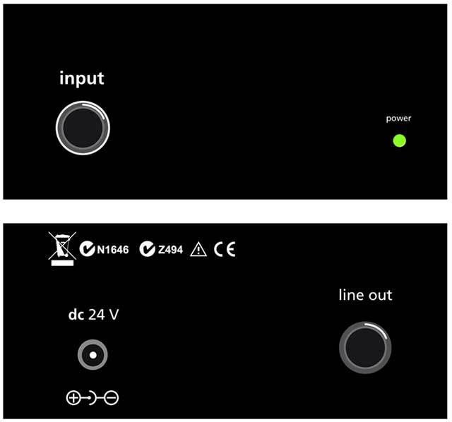 | Input One | 6.3 mm (1/4") mono jack socket. Input for instruments (pick-ups) and line-level sources (Input impedance 10kOhm) |