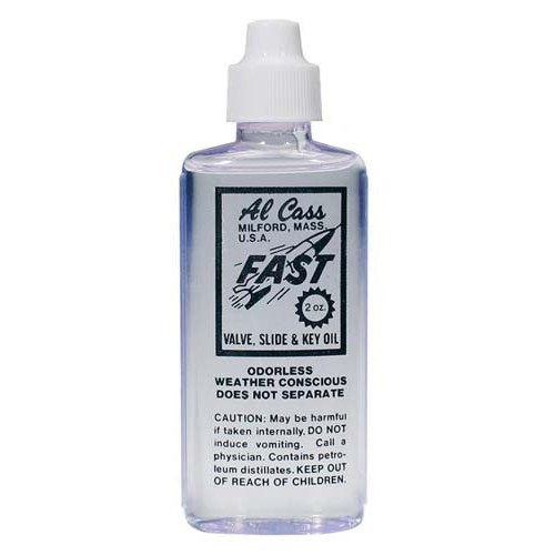 The famous Al Cass "Fast" is a combination valve, slide, and key lubricant that will not gum or separate under any weather conditions. Al Cass Fast Oil has been an enduring favourite of brass players for decades. It is a combination valve, slide and key oil designed for long-lasting lubrication and is a petroleum-based oil available in a 2 oz. bottle.