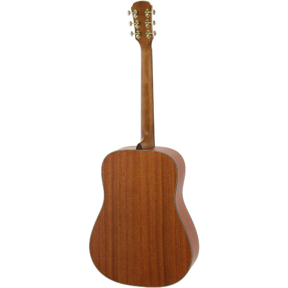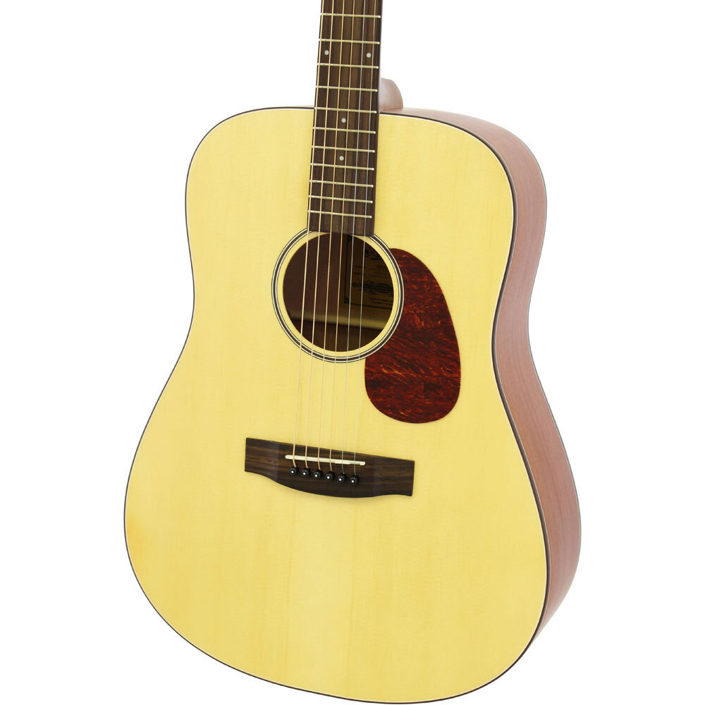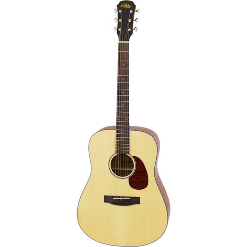 This Dreadnought body shape is extremely popular with players looking for a guitar that offers a nice full tone. It features a Spruce top with Sapele back & sides finished in a beautiful Natural Matte finish with a shell pickguard. All in all a well made guiitar at a great price.