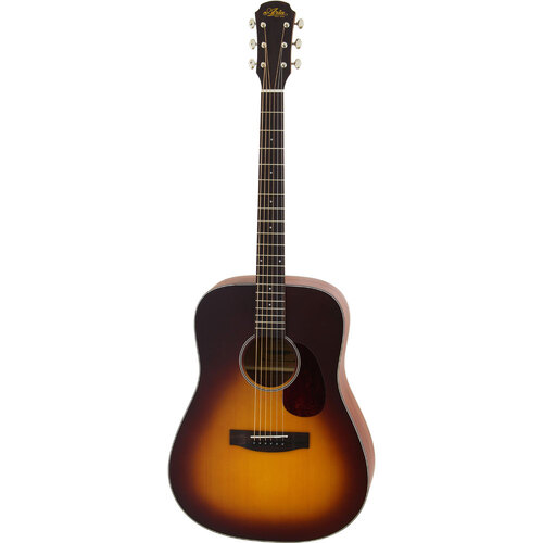 This Dreadnought body shape is extremely popular with players looking for a guitar that offers a nice full tone. It features a Spruce top with Sapele back & sides finished in a beautiful Tobacco Sunburst Matte finish with a shell pickguard. All in all a well made guiitar at a great price.