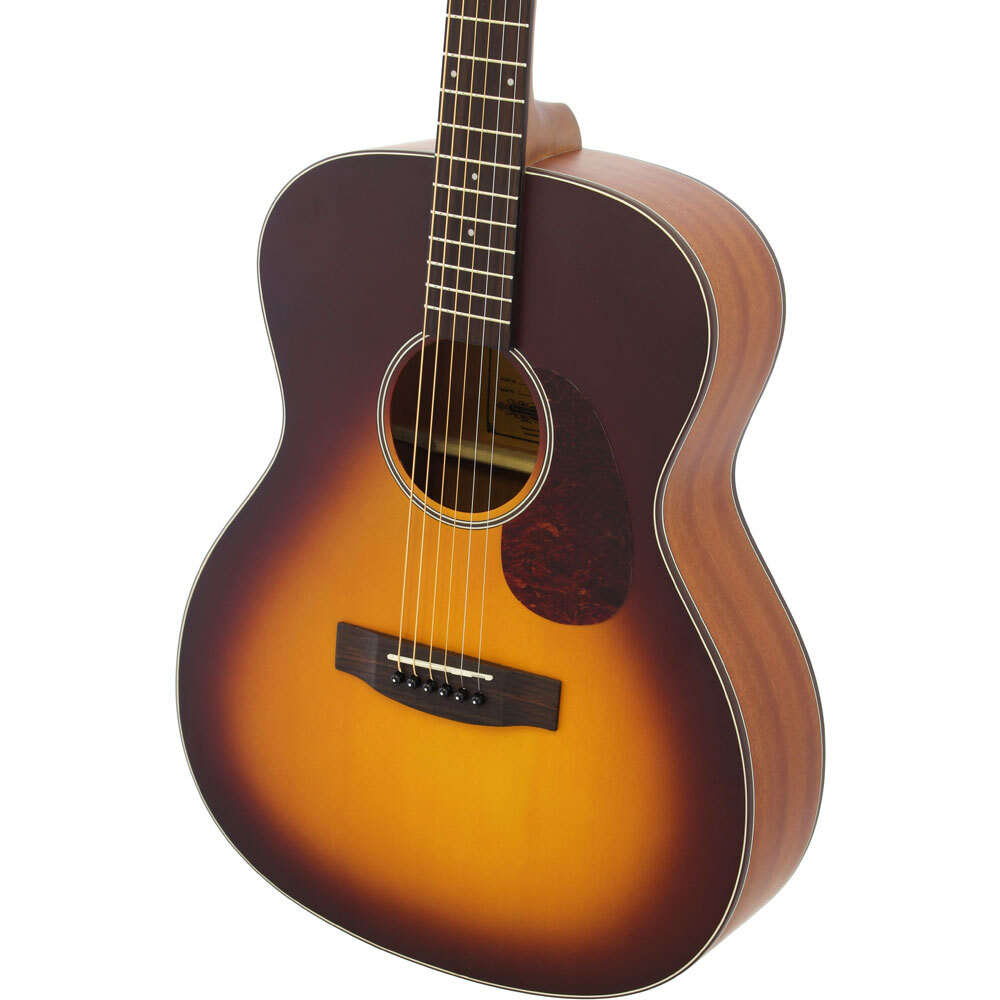 This Orchestral or OM body shape is extremely popular with players looking for a guitar that isn't too bulky but still offers a nice full tone. It features a Spruce top with Sapele back & sides finished in a beautiful Tobacco Sunburst Matte finish with a shell pickguard. All in all a well made guiitar at a great price.