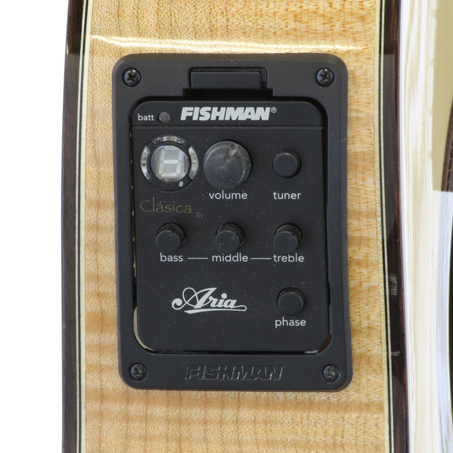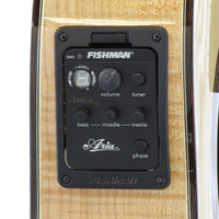 The Aria A-48CE is a thin body cutaway classical guitar with a Solid Spruce top and Flamed Maple back and sides. The 14th fret neck joint and 45mm nut width make a playability effortless at higher fret positions. Perfect versatility for any type of players even for non classical guitar players. Equipped with Fishman Classica III preamp system with built-in tuner.
