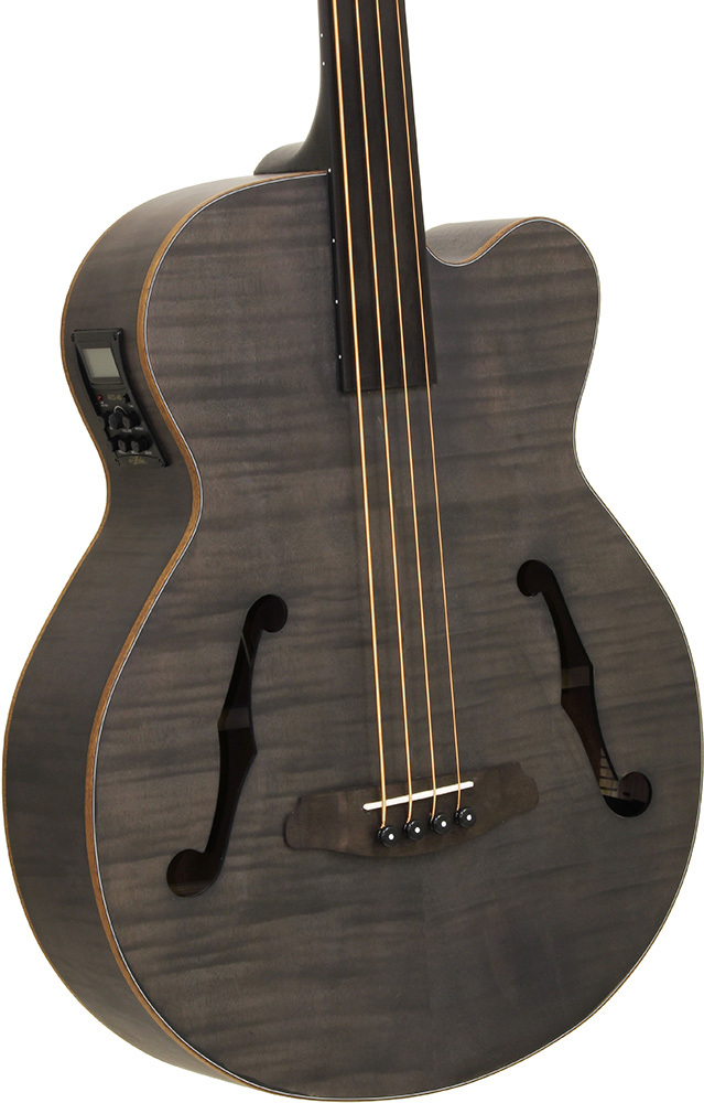 Gorgeous flamed body with wood binding was applied to create a distinctive appearance. A stunning vintage vibe with warm fretless tone which can be used in both acoustic and amplified situations.
