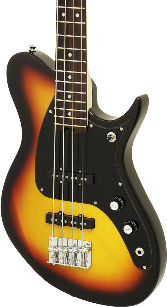 The J-B is ideal for the entry level player who's looking for something a little different. This medium scale, curvy single cut bass has a fresh design and a powerful sound. You're now free to move about the fretboard.