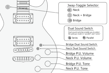 | Controls | 2 x Volume, 2 x Tone, 3-way Pickup Selector Switch, 2 x Dual Sound Switch |