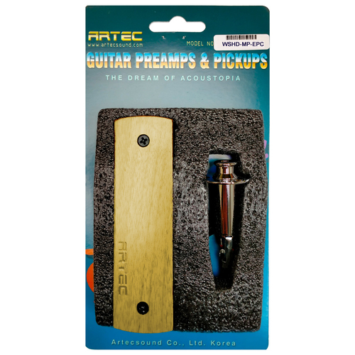The Artec WSHD (Wood Soundhole Humbucker) pickup is a wooden passive humbucker magnetic soundhole pickup. This pickup is available in two Output Configurations (OSJ - External Output Jack) or (EPC - Internal Output Jack)