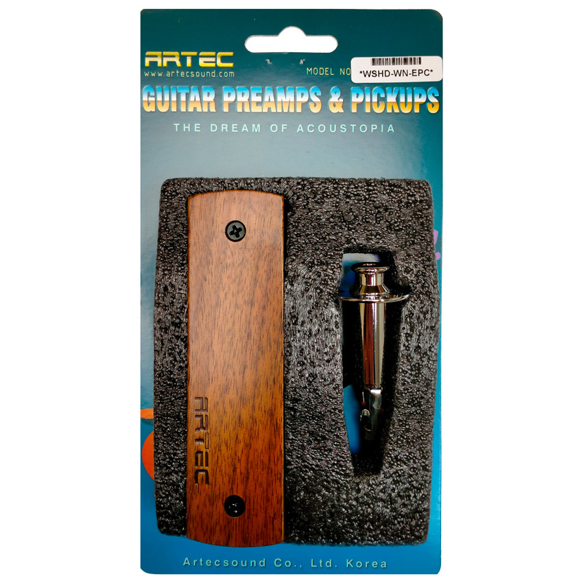 The Artec WSHD (Wood Soundhole Humbucker) pickup is a wooden passive humbucker magnetic soundhole pickup. This pickup is available in two Output Configurations (OSJ - External Output Jack) or (EPC - Internal Output Jack)