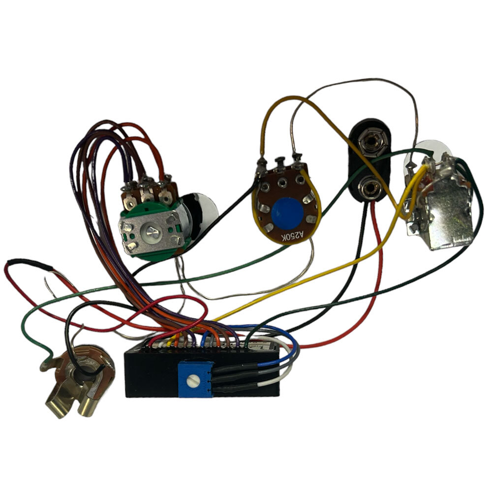 Wired with our pro-level preamp and premium audio-quality pots and switches, you'll have smooth control and be ready for years of rugged use. We include battery clips and an output jack for quick installation. All the pots are grounded with a wire that can be connected to the cavity shield or simply cut away if not needed in your installation. Everything is pre-soldered with pro-quality pure copper wire that is double tin plated and protected with semi-rigid insulation so it won't flop around in the cavity or degrade over time.