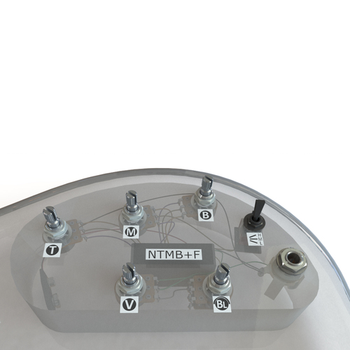 Wired with our NTMB+F pro-level pre-amp and premium audio-quality pots and switches, you''ll have smooth control and be ready for years of rugged use. We include battery clips and an output jack for quick installation. This configuration has a 3-Band EQ, 5 Pots and 1-Toggle: (Volume) (Blend) (Treble) (Mid) [250,500,800Hz Mid Toggle] (Bass) - Active.