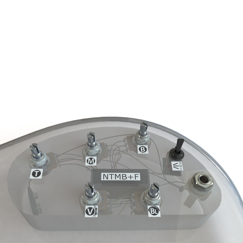 Wired with our NTMB+F pro-level pre-amp and premium audio-quality pots and switches, you''ll have smooth control and be ready for years of rugged use. We include battery clips and an output jack for quick installation. This configuration has a 3-Band EQ, 5 Pots and 1-Toggle: (Volume with Pull-Bypass Switch) (Blend) (Treble) (Mid) [250,500,800Hz Mid Toggle] (Bass) - Active/Passive.