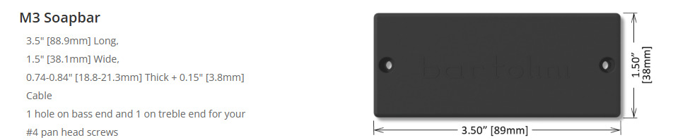 1-1/2" x 3-1/2" Bass Soapbar with squarish corners. Same as the EMG35 shape made by EMG.