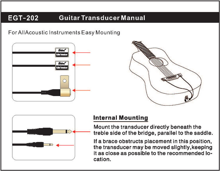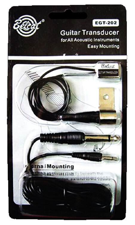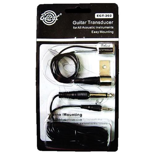 The Belcat EGT-202 is an easy to mount dual piezo transducer that opens a whole new world of effects and amplification to acoustic instruments such as acoustic guitars, ukuleles, violins etc. This product can be used on steel or nylon string instruments.