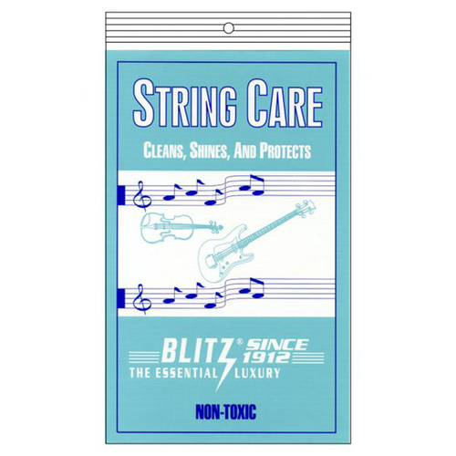Specially treated String Care cleaning cloth removes dirt and tarnish with little effort. String Care can be used on all metal strings for both acoustic and electric instruments. It leaves a protective shield on strings. Easy to use!