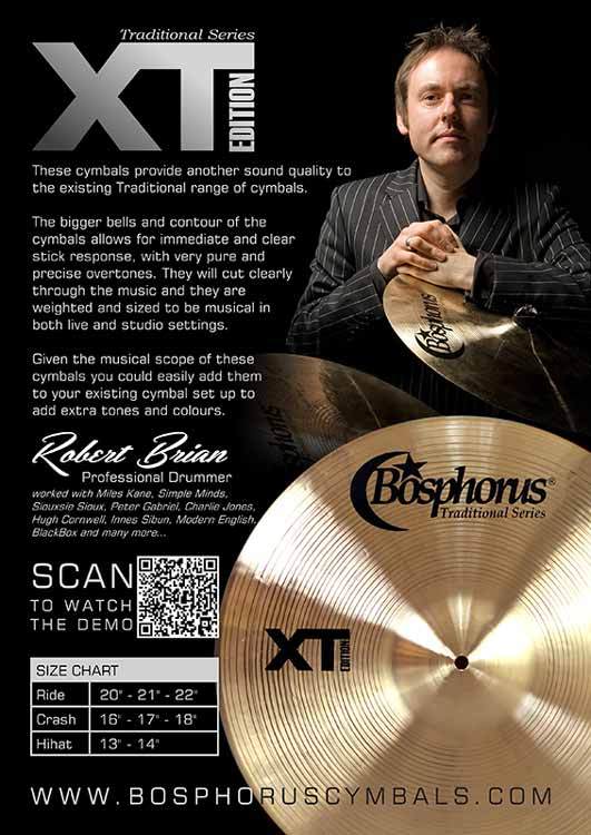 Music is developing and changing everyday and the musical instruments have to be a part of that. The story of Bosphorus XT Edition cymbals started when Robert Brian showed up and said he loved the Traditional Series but needed some modifications on the cymbals to meet his needs for the new projects. We ended up with an updated design which is not possible to call as regular Traditional Series anymore.