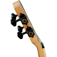 The natural wood with its distinctive graphite-look grain, satin finish and high-quality black tuning machines give the ukulele a beautiful, individual and elegant look. The brilliant sounding, precise and assertive carbon strings guarantee very good tuning stability and playability and perfectly round off the first-class quality of the ukulele.