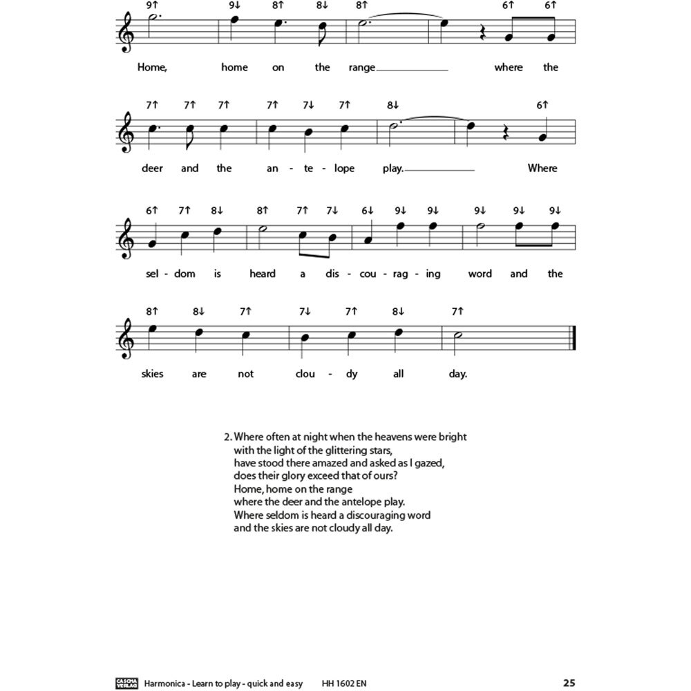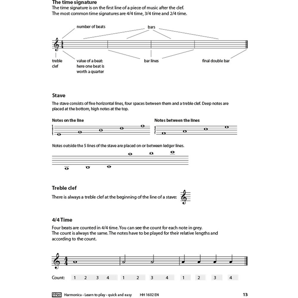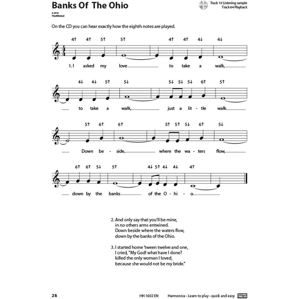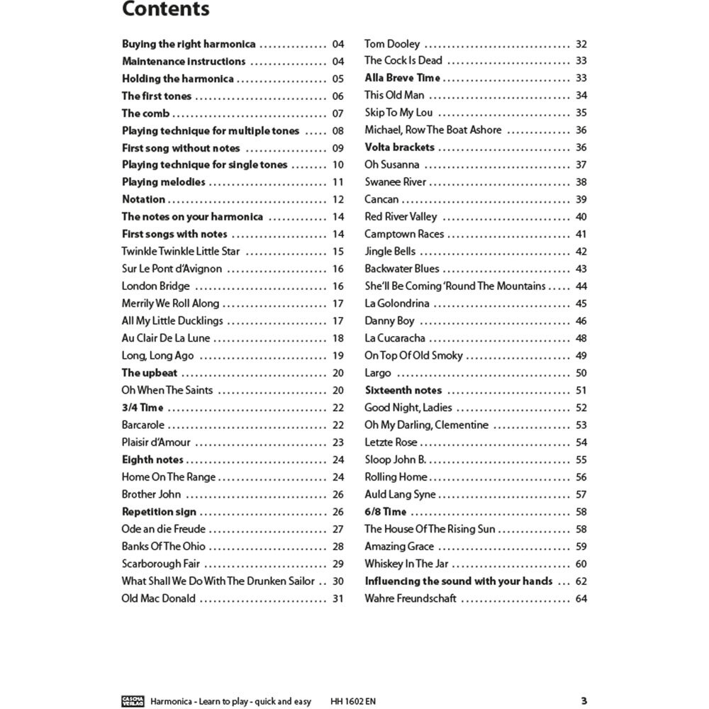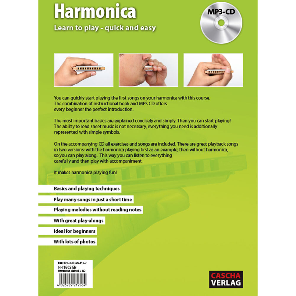 On the accompanying CD all exercises and songs are included. There are great playback songs in two versions: with the harmonica playing first as an example, then without harmonica, so you can play along. This way you can listen to everything carefully and then play with accompaniment. It makes harmonica playing fun!