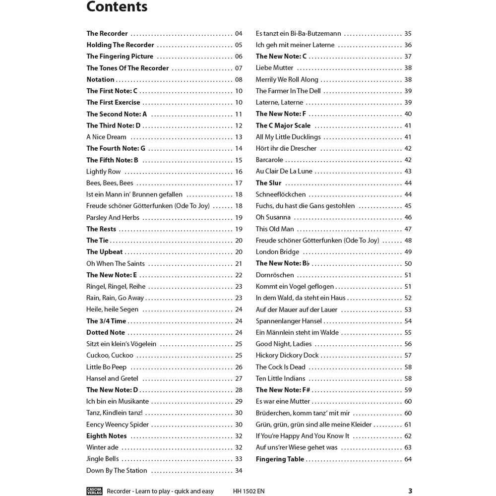 With this course you can play the first songs on your recorder after a short time. The most important basics are explained concisely and simply. Then you can start playing the first songs. Songs and exercises alternate and have been arranged suiting for the age. The book contains more than 50 popular childrens songs which are also suitable for playing on many occasions.