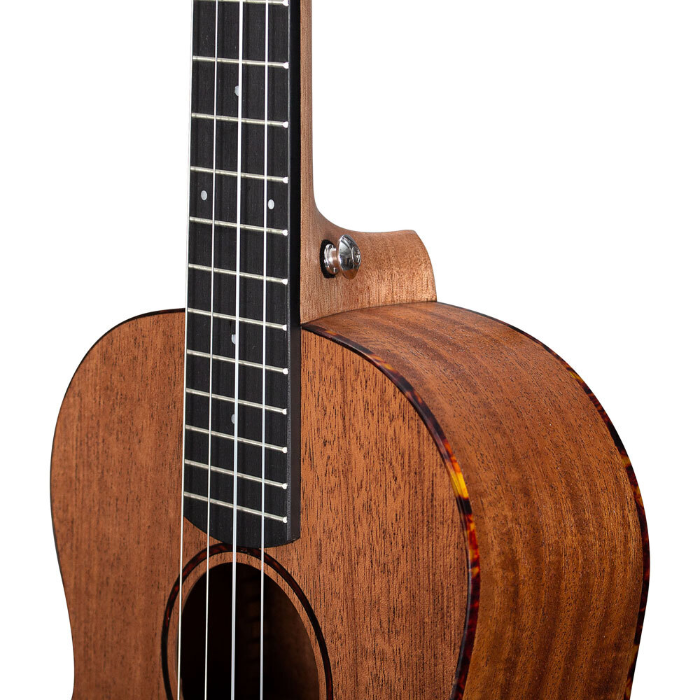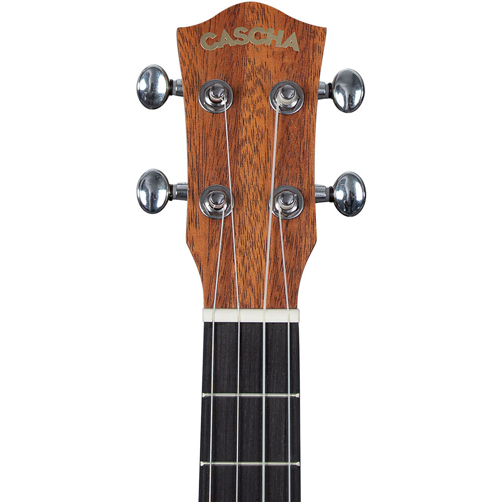 The body and neck of the Cascha baritone ukulele are made entirely of mahogany wood. This gives it a warm, balanced sound with subtle highs. The fingerboard and bridge are made of dark rosewood, which provides a nice visual contrast. In addition, the "Red Tortoise" binding on the body and rosette is quite eye-catching and gives the Cascha Baritone Ukulele a classic and very classy look.
