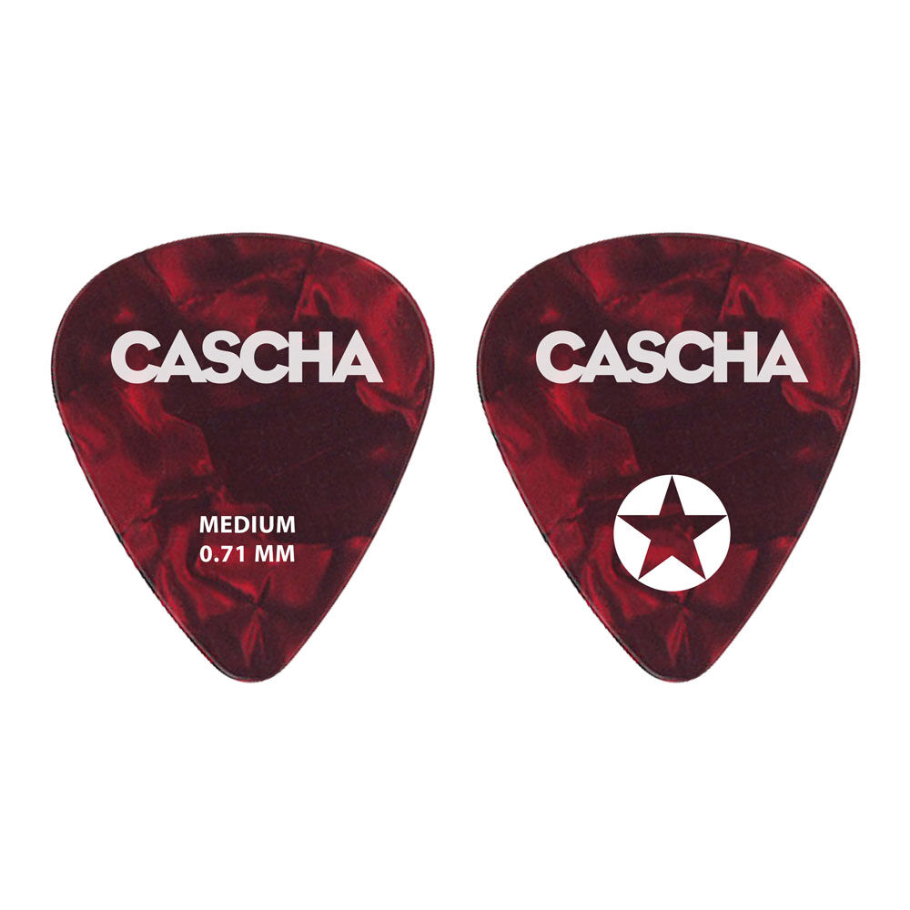 The CASCHA Guitar Pick Box Medium contains 24 red picks made of particularly abrasion-resistant celluloid.
