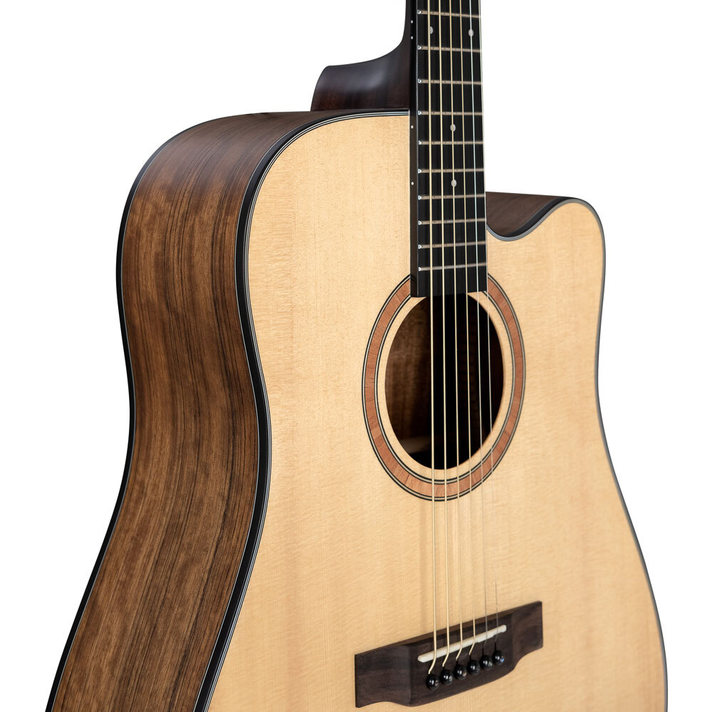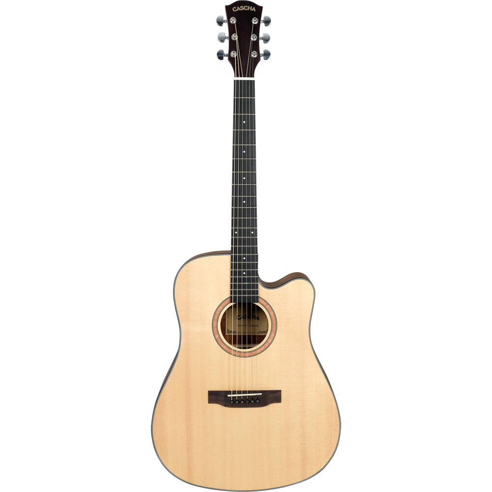 The Cascha Performer Series CGA300 is a dreadnought-shaped acoustic guitar with cutaway. Its comparatively large body delivers a loud, assertive sound with powerful basses, which is why it is especially well-suited for styles such as bluegrass, blues and folk. However, the CGA300 from the Cascha Performer Series is a true all-rounder, making it the ideal companion for all other musical excursions as well.