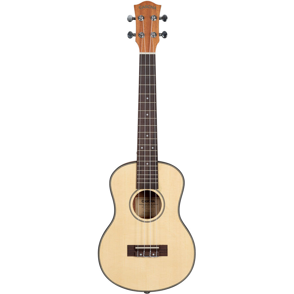 The beautiful and even grain is not only an optical highlight. As a top wood for ukuleles and acoustic guitars, spruce provides a full sound and powerful feedback. Since it is a little softer, it transmits vibrations more easily. The noble matt finish has been specially selected so as not to impair the sound. The built-in strap pins allow the attachment of ukulele straps. This increases comfort and mobility when playing.