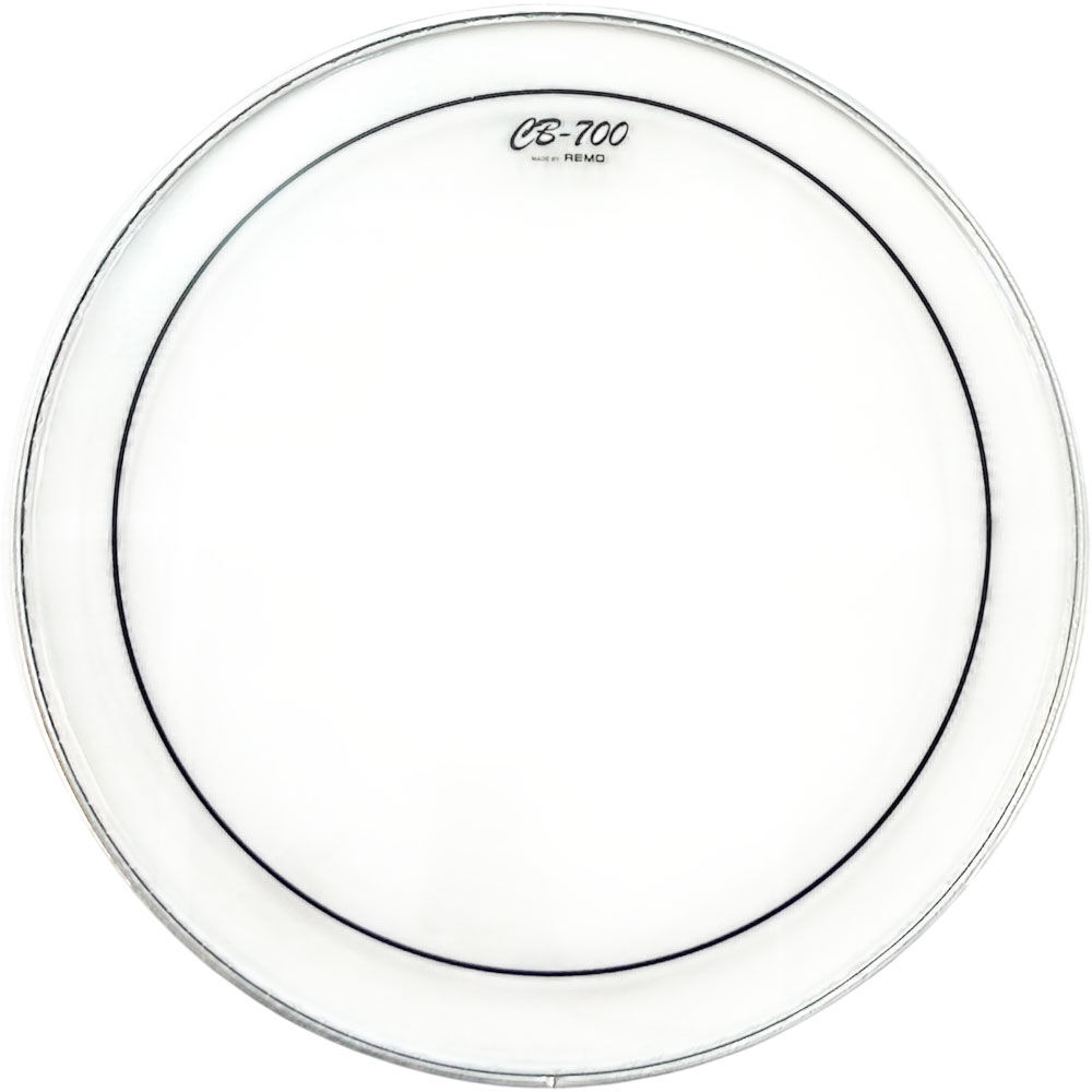 Achieve a punchy, controlled bass drum tone with the CB-700 by Remo Pinstripe Clear Bass-drum head.Featuring two layers of 7-mil Mylar film with a glued outer control ring, this head emphasizes center-focused sound with short sustain and strong low-end. Its quick fall makes it ideal for "fat" pop and rock tones, while providing medium tuning with moderate attack and response.