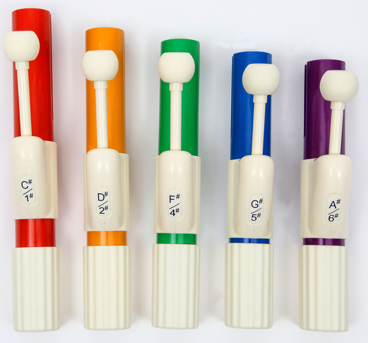 Set included 5 chimes, C#, D#, F#, G#, A#, in a portable, durable case.