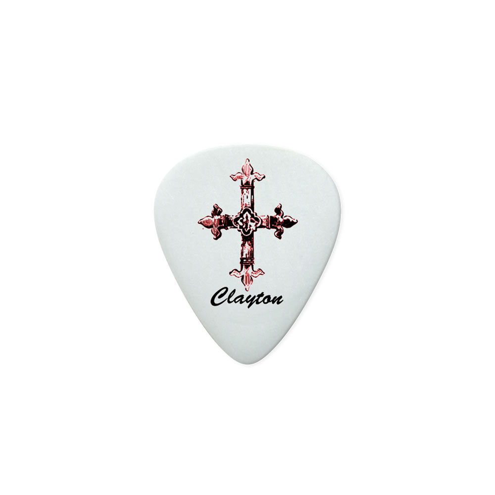 Clayton Christian Guitar Picks are crafted for musicians who want to express both their faith and their passion for music.eaturing inspiring Christian symbols in a classic line art style.hese picks serve as a reminder of the deeper meaning behind every note you play.