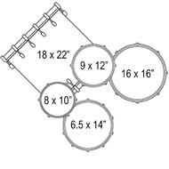 - Bass Drum: 22 x 18"