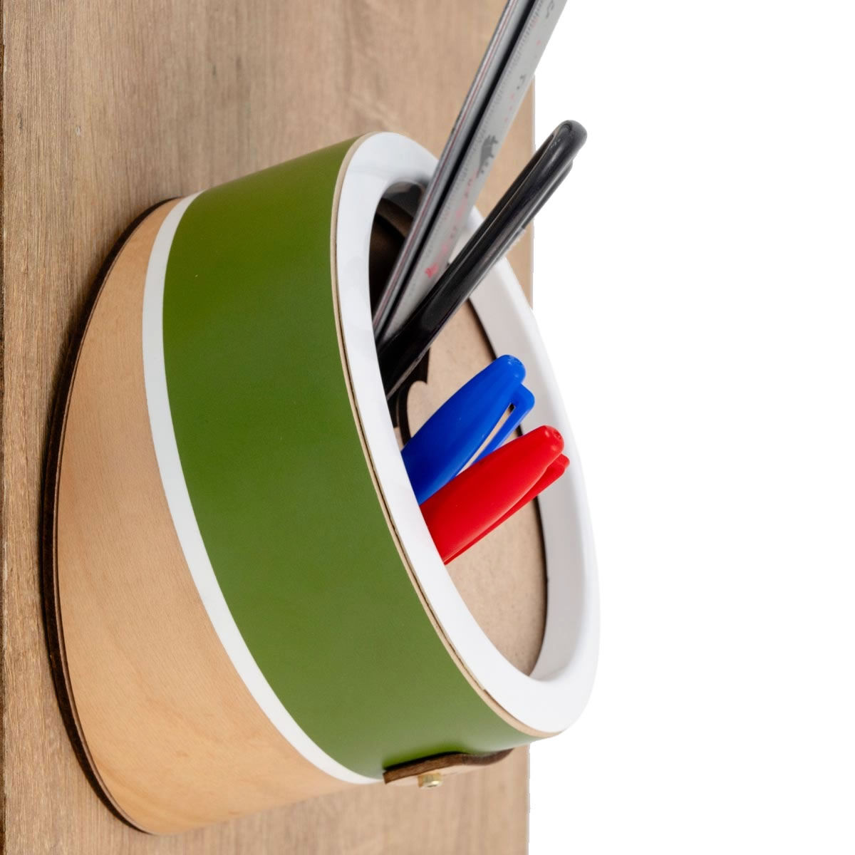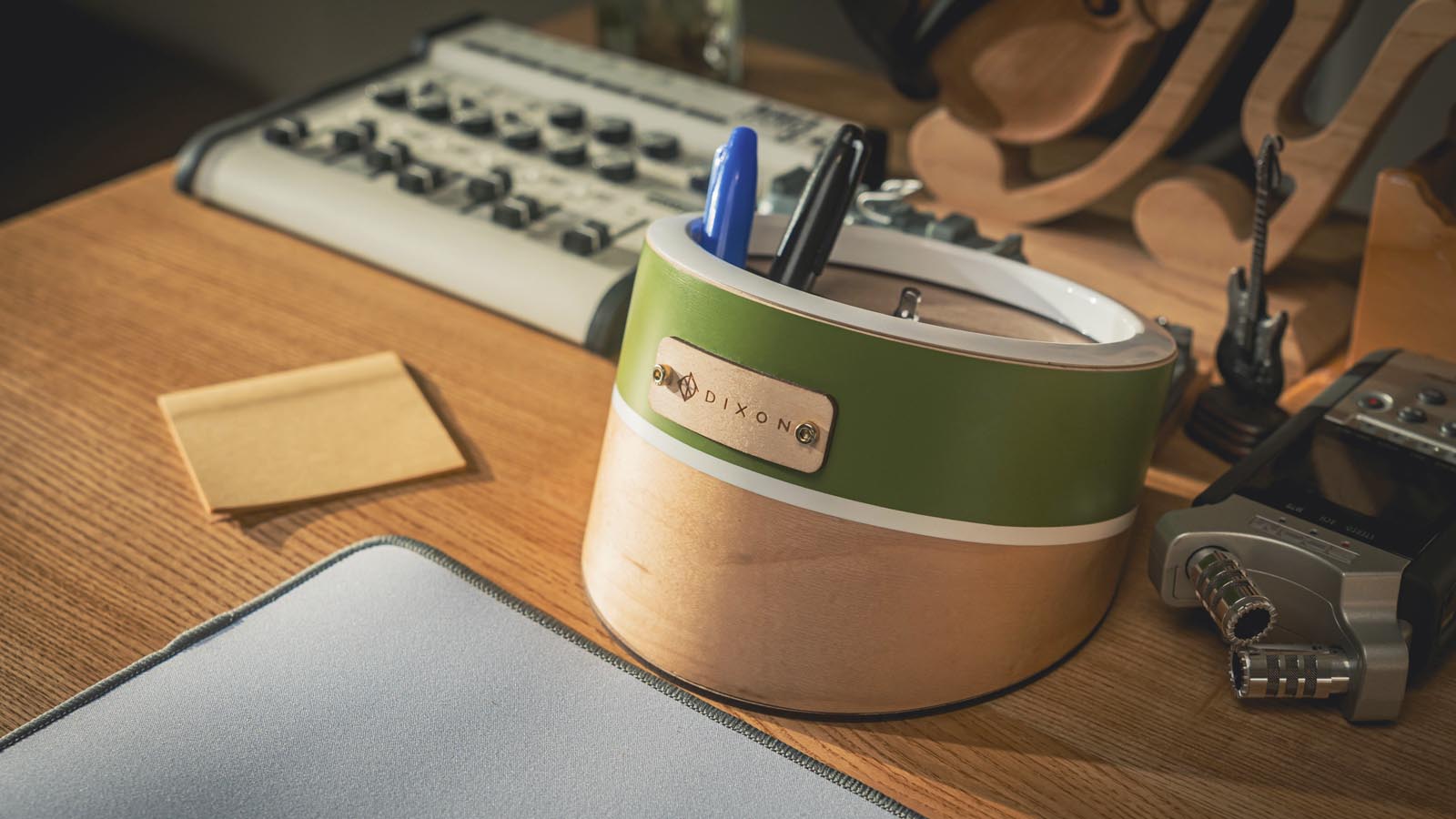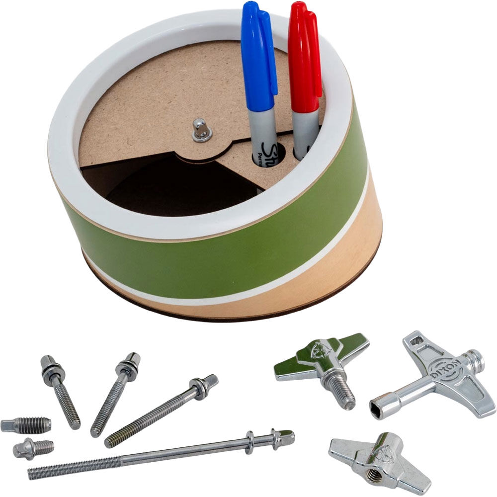 This storage is made of a 6" diameter maple shell and drum parts that drummers are all familiar with. With a rotating lid and keyhole hanger, it serves as a pen holder, cable, charger, desk supplies and drum essentials storage on your desk and wall.Supports up to 1 kg for wall installations.