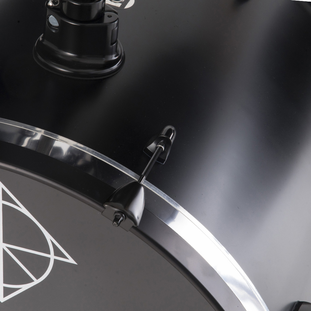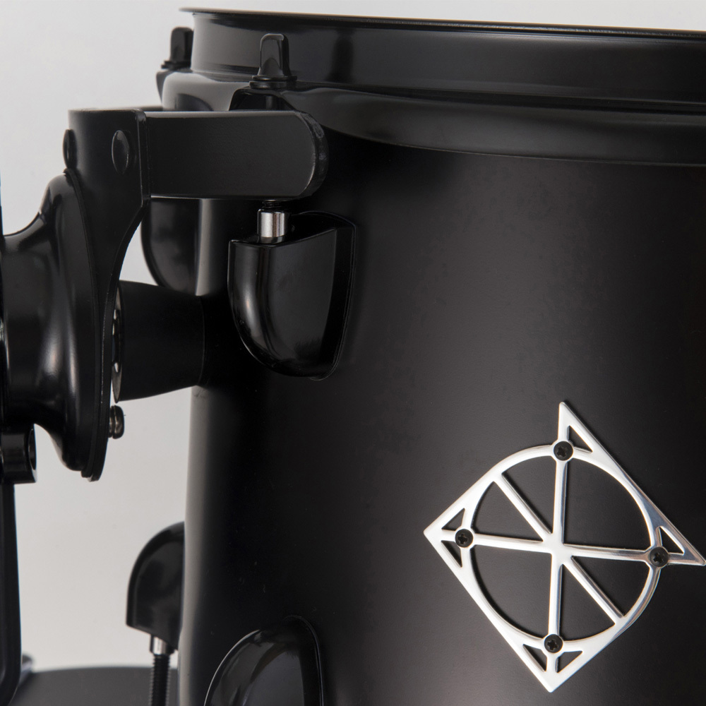 - Evans single ply heads on tom and bass with an Evans USA coated batter on the snare drum