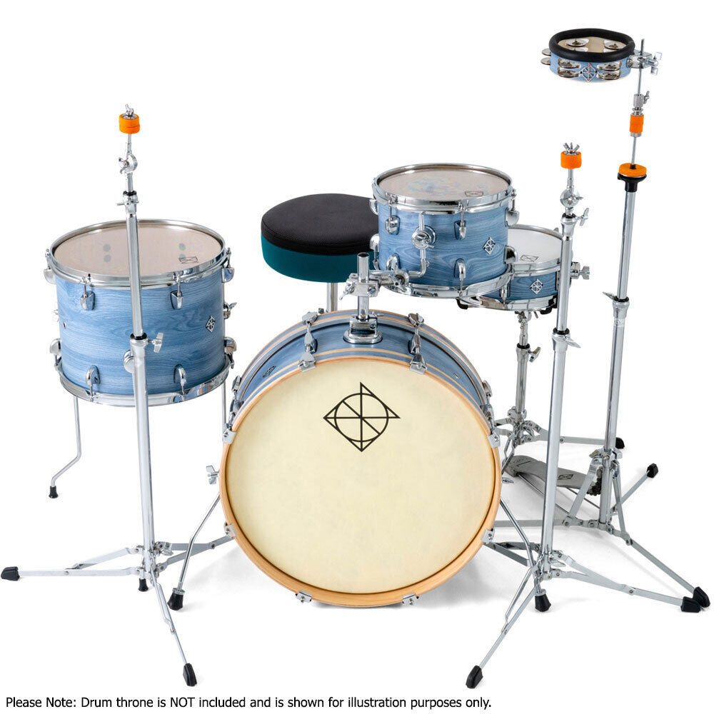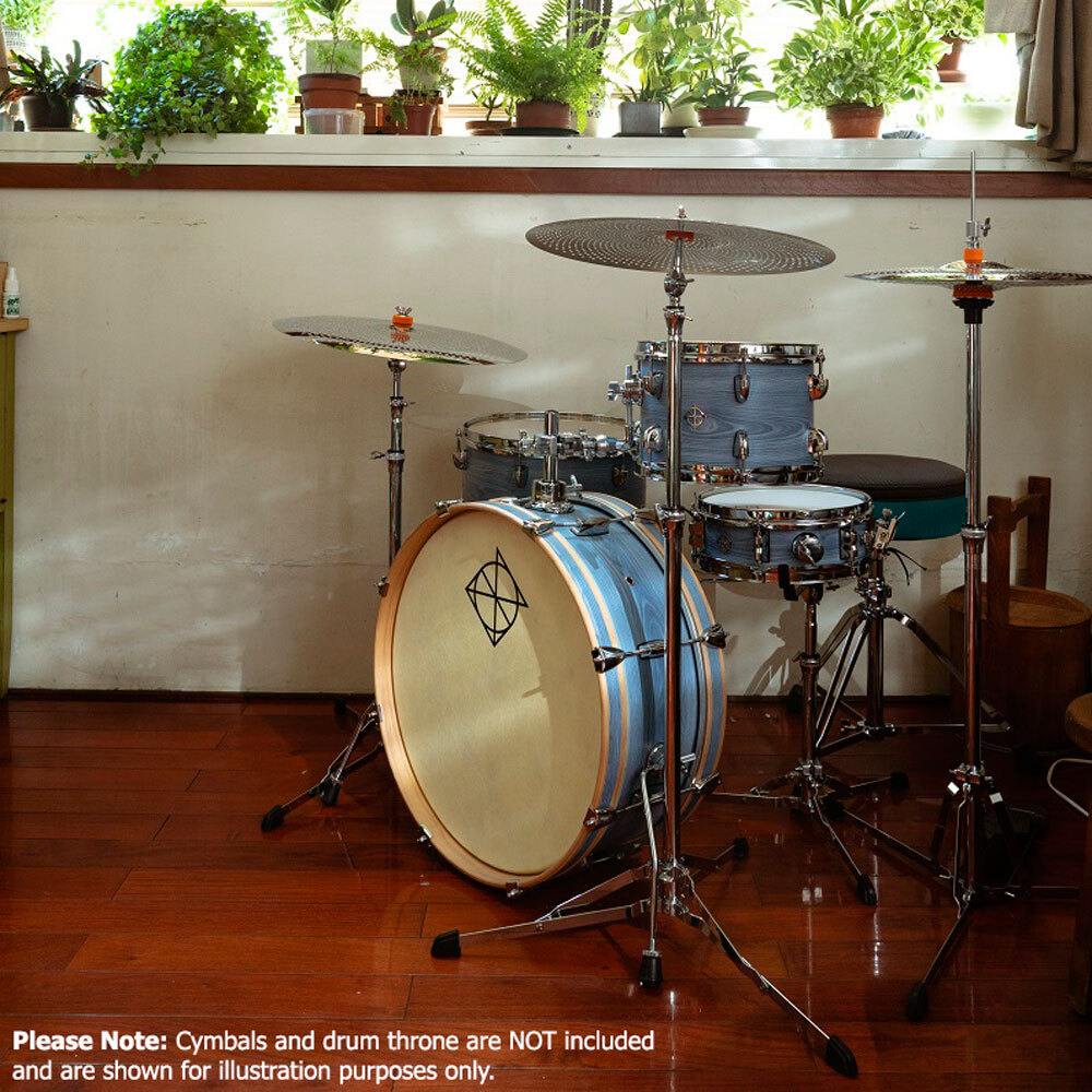 What makes Little Roomer different than most compact kits is its clear articulate tom, floor tom and snare, highlighted by the controlled but expanded tuning range of its 7" x 20" bass drum made of Mahogany. The larger head surface offers a lower and more natural tuning range than the usual smaller, but deeper travel-focused kits making Little Roomer proportionally accurate and musically relevant.