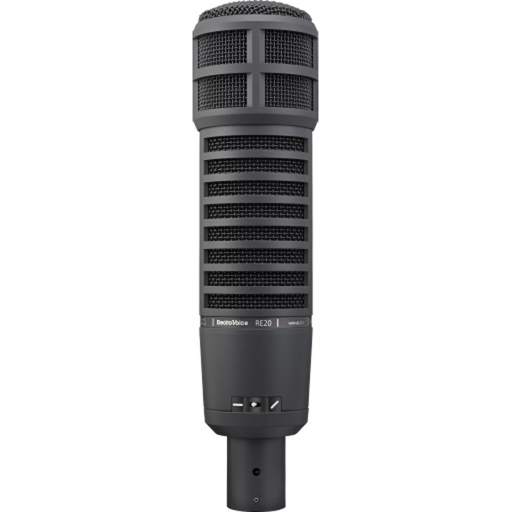 The exceptional performance of the RE20 is achieved by using a large Acoustalloy diaphragm in combination with an exceptionally low-mass aluminum voice coil. Using this diaphragm assembly, the RE20 is capable of reproducing extremely high sound pressure levels with no fear of the overload and distortion often experienced with phantom-powered condensers. The RE20 will also continue to function flawlessly in high humidity and elevated temperatures that would seriously degrade competitive condenser microphones. A massive steel housing and effective hum-bucking coil assure the RE20's resistance to magnetically induced hum and noise. This means the RE20 can be used successfully in situations where other microphones would experience unacceptable levels of hum and buzz.