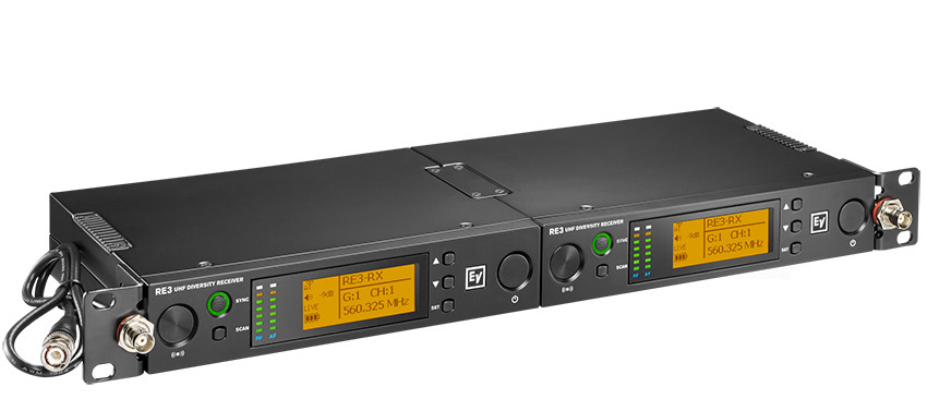 The RMK2 kit contains all necessary items to couple and mount two RE3-RX receivers into a 19" rack.
