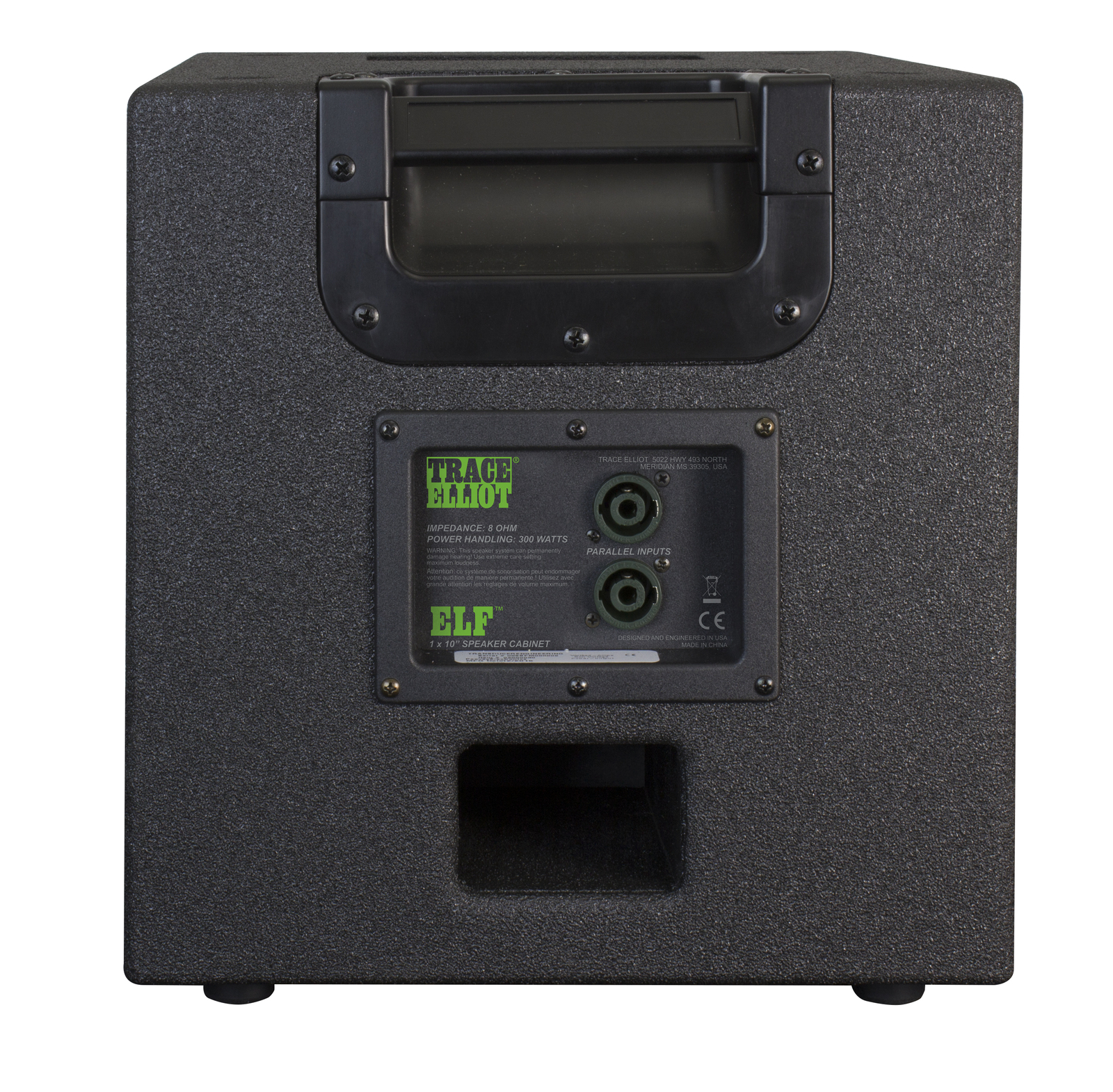 The perfect companion to the revolutionary 200W rms Trace Elliot ELF amplifier, the 1x10 cab uses a premium Eminence driver and dual parallel inputs that make it easy to use two cabinets with the ELF. A recessed cradle on top fits the ELF perfectly and keeps the amplifier in place. The durable painted cab also features an inset top handle that comes in handy when routing the speaker cables.