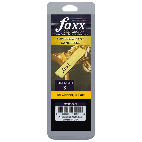 FAXX Bb Clarinet Cane Reeds are Made in France. These student reeds are precision machined from French cane and hand finished for consistent quality. With a fine balance, rich timbre and lively response, educators, students and professionals will find them to be long-lasting, and most importantly, consistently playable. Reed after reed, box after box!