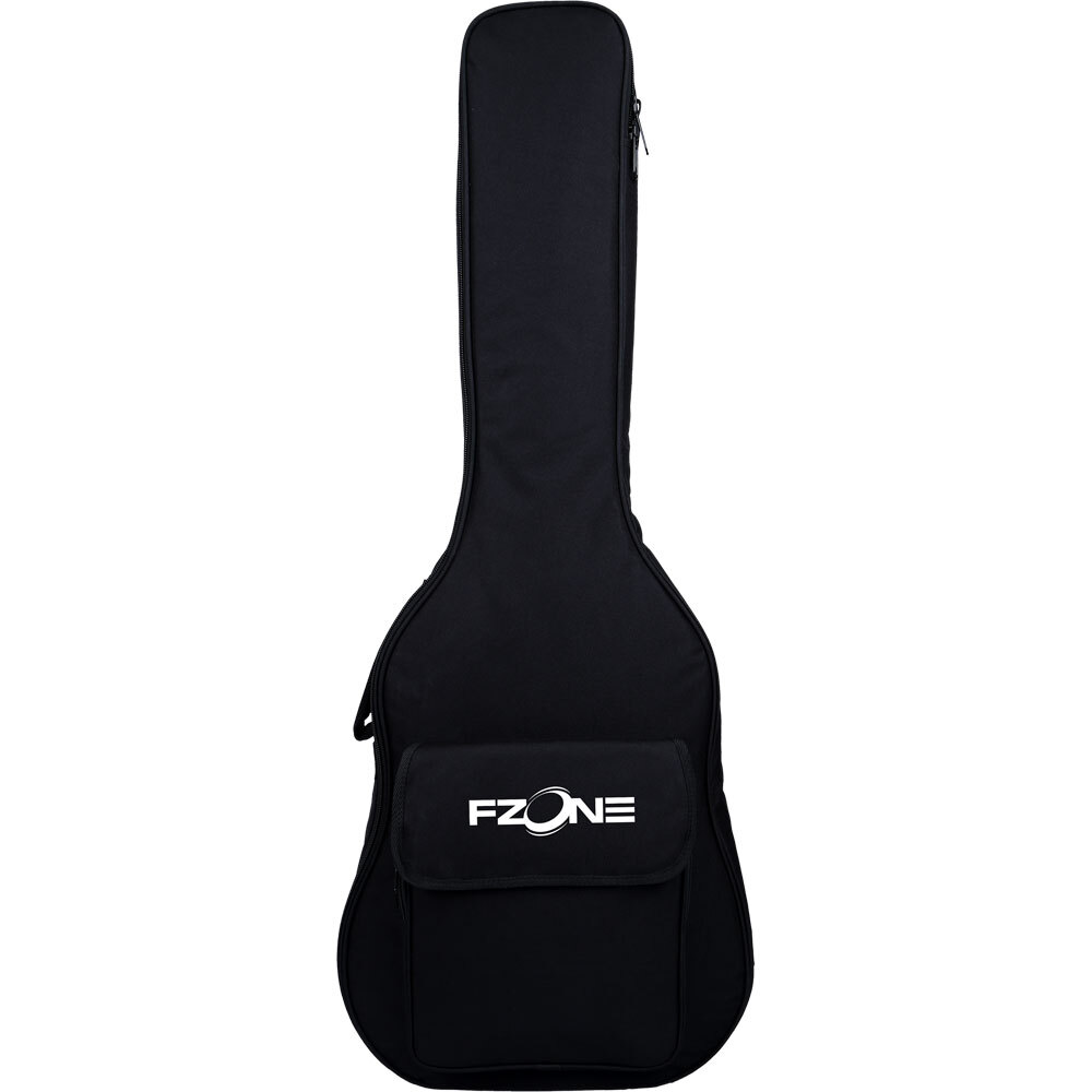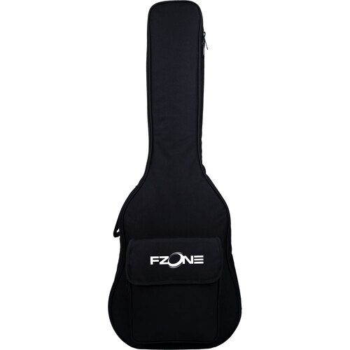 FZONE Padded Acoustic Guitar Bag in Black with Front Storage Pocket. This is a shaped Acoustic Guitar bag that fits most standard acoustic guitars.