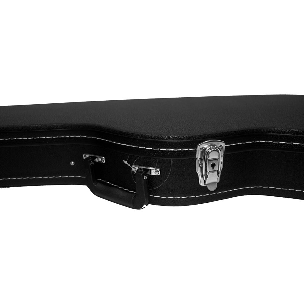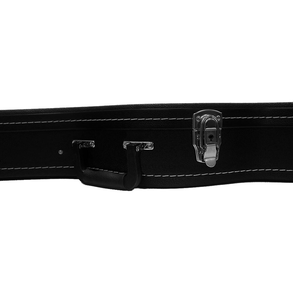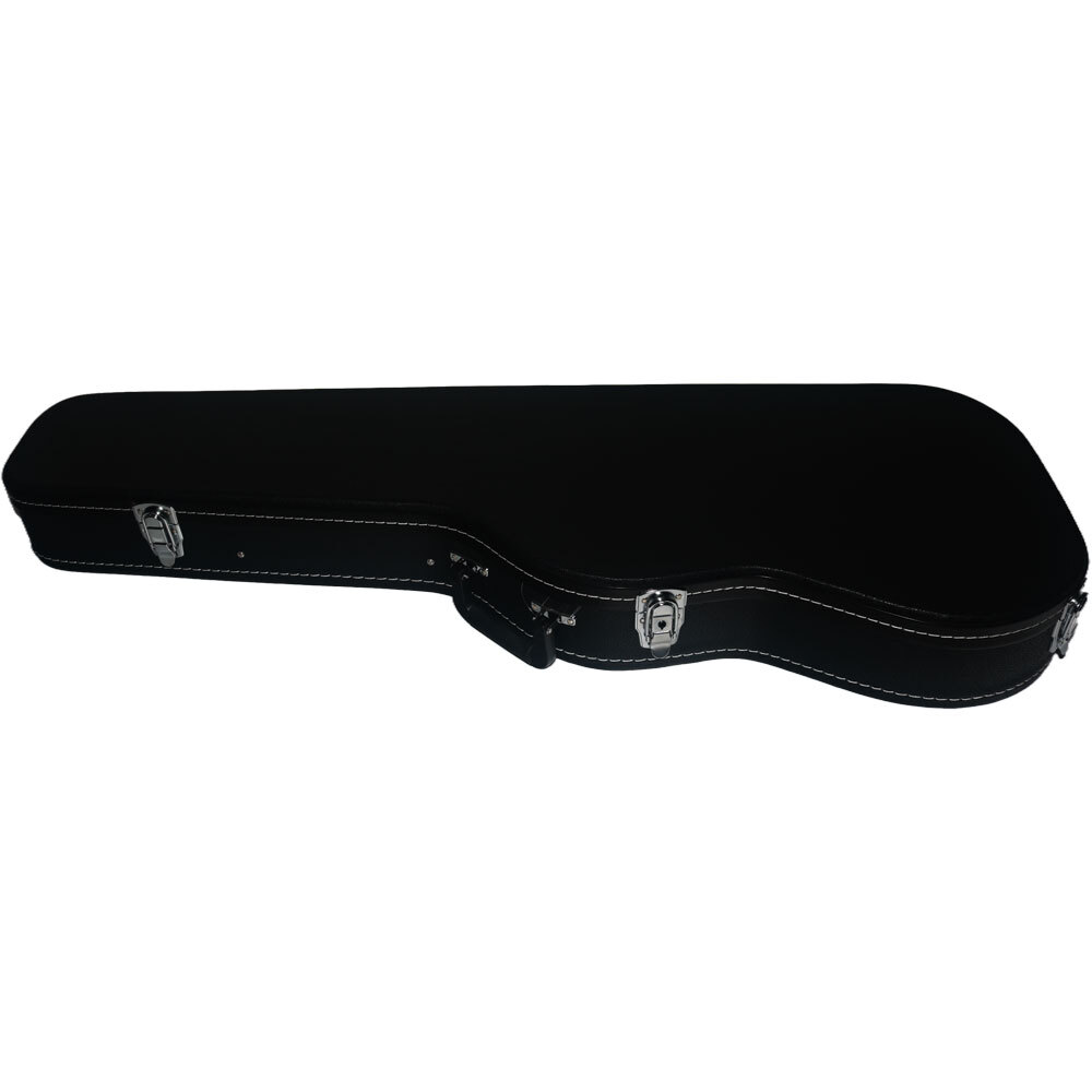 FZONE Wooden Electric Guitar Case with Flat Edge in Black. This is a shaped Electric Guitar case that fits most standard electric guitars. It has a flat straight edge for better stability when standing on its spine.