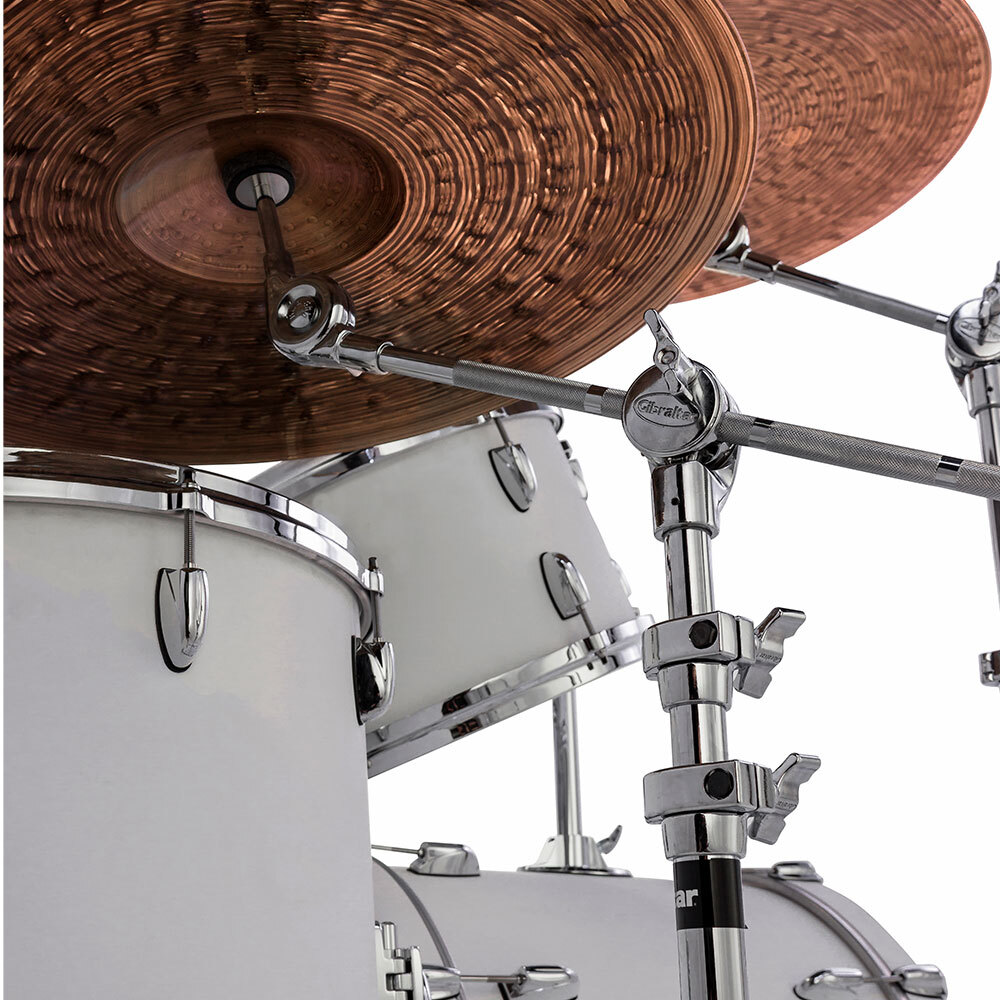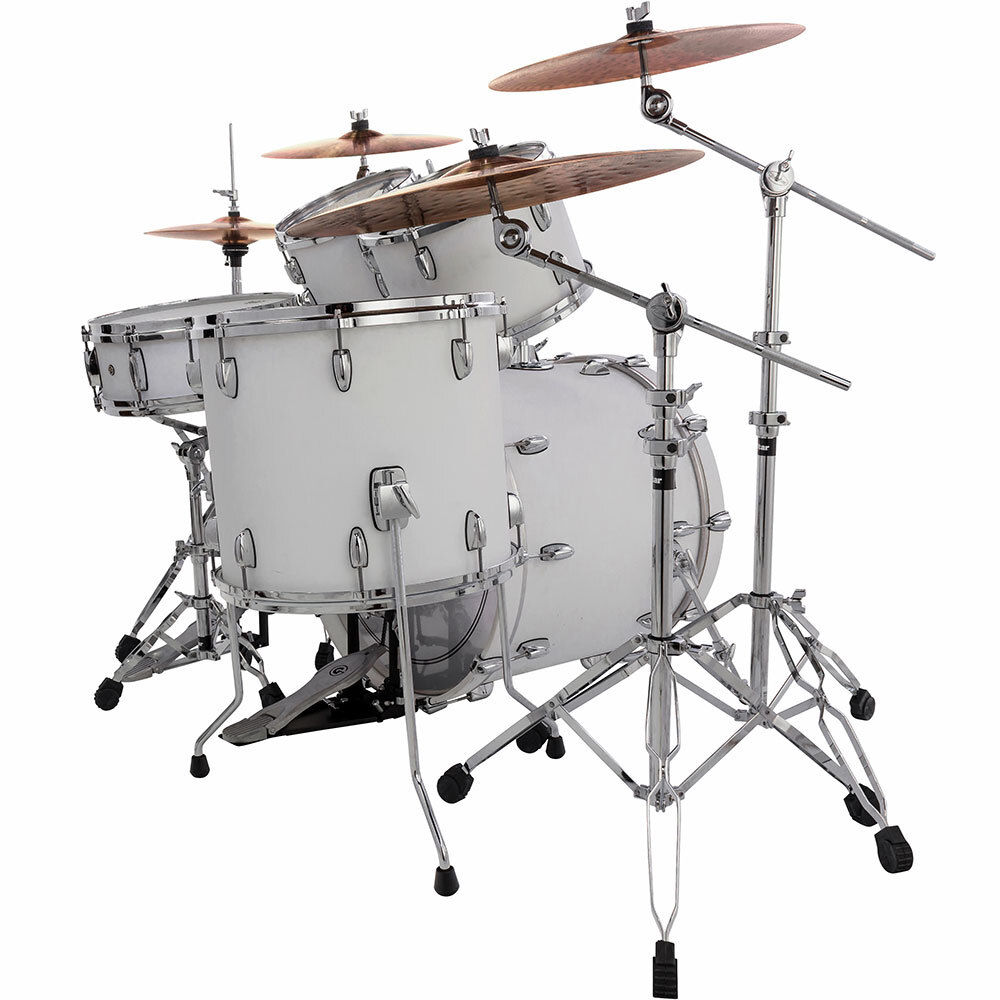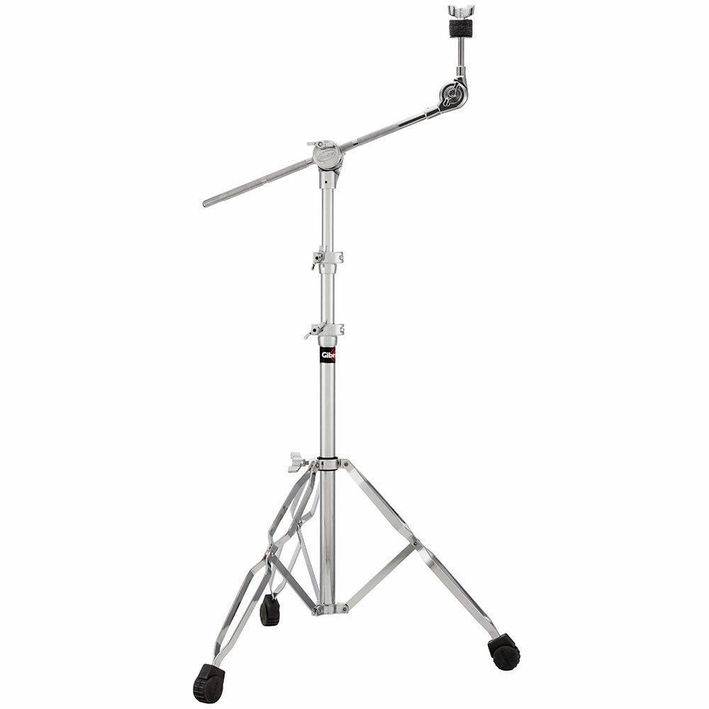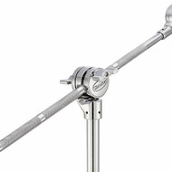 The exclusive round rubber foot provides additional stability, without a large profile. The hinged height adjustment collars are fitted with nylon inserts to prevent any metal to metal contact. Outfitted with professional features, this medium weight stand comes with a dual point boom tilter that allows for independent boom angle and length adjustment. The 16" hideaway boom arm is fixed with a geared cymbal tilter for easy and secure cymbal angle adjustment. Height range is 30" to 61"
