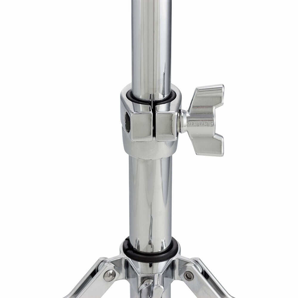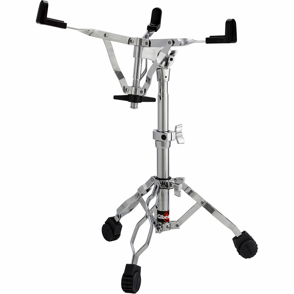 The excusive round rubber foot provides additional stability, without a large profile. The hinged height adjustment collar is fitted with a nylon insert to prevent any metal to metal contact. The geared basket tilter and nylon wing nut basket arm adjuster help to position the snare securely at a comfortable angle. This stand will fit 10" to 15" drums with metal hoops as well as 14" drums with wood hoops. Height range is 18" to 25"