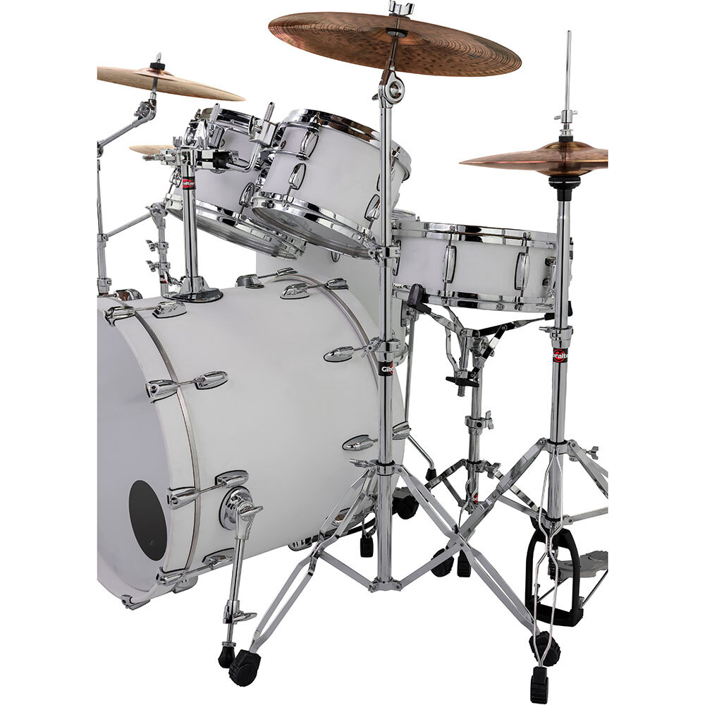 The exclusive round rubber foot provides additional stability, without a large profile. The hinged height adjustment collars are fitted with nylon inserts to prevent any metal to metal contact. Position the cymbal angle easily with the geared cymbal tilter. Height range is 30" to 61"