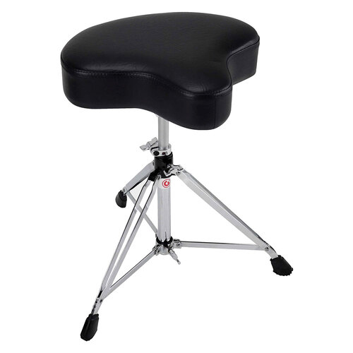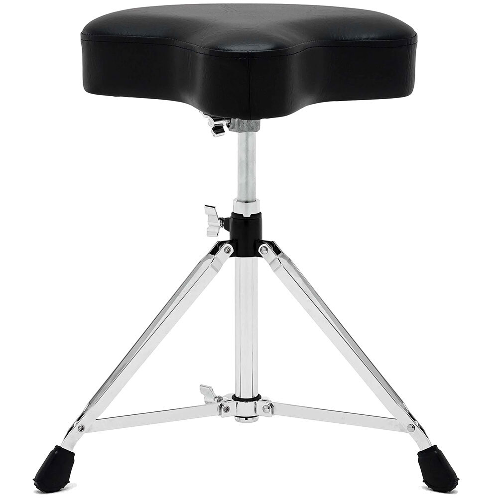 A moto style drum throne with a double-braced base for extra stability but lightweight enough for easy transport.