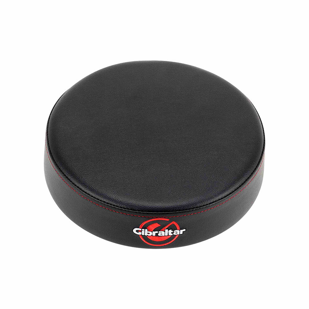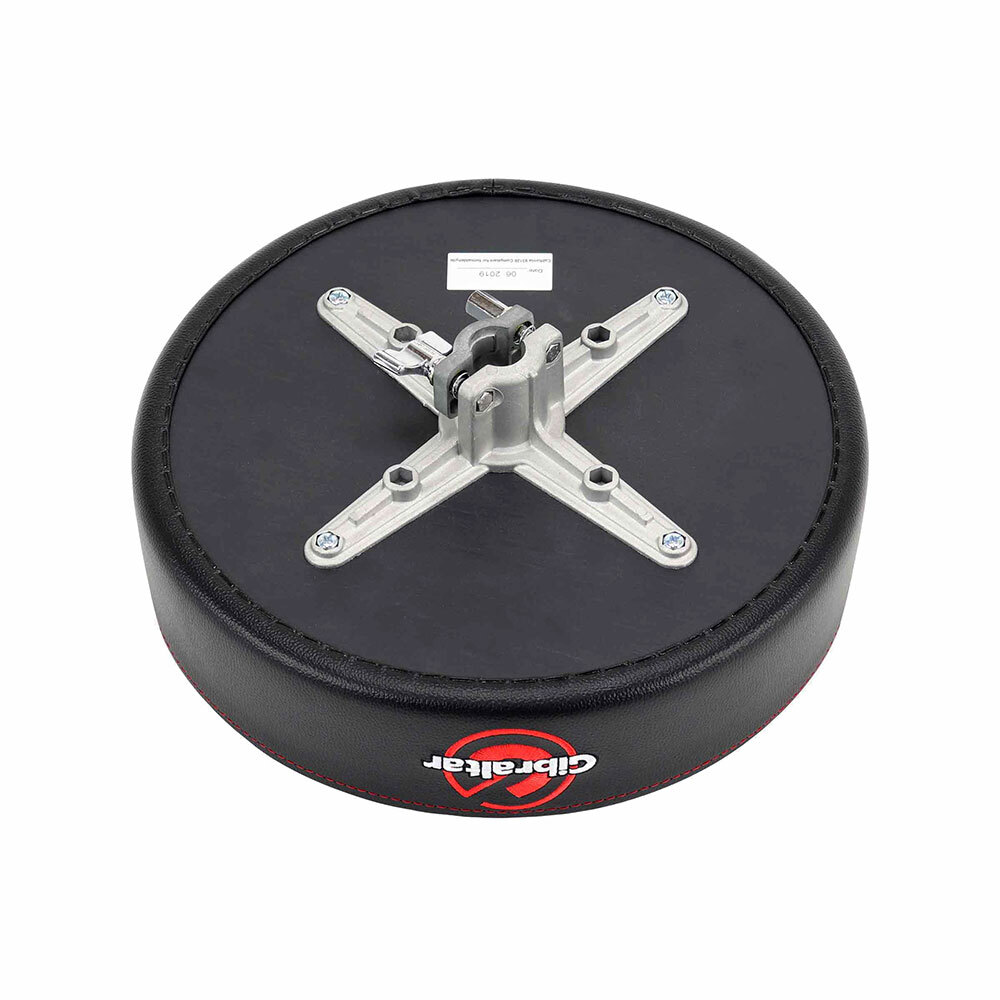 Featuring a 13" diameter round 3.5" thick round memory foam seat outfitted in black PVC leather on top and side panels with stitched color logo. The 9608 double-braced tripod base extends from the lowest setting of 20" to 26" in height. The all-cast spindle height adjustment makes it easy to adjust the height, then lock in the setting with a wing nut memory lock for wobble-free stability. Gibraltar's exclusive design Super Foot provides a stable foundation to give hours of solid support.