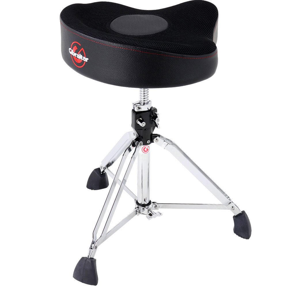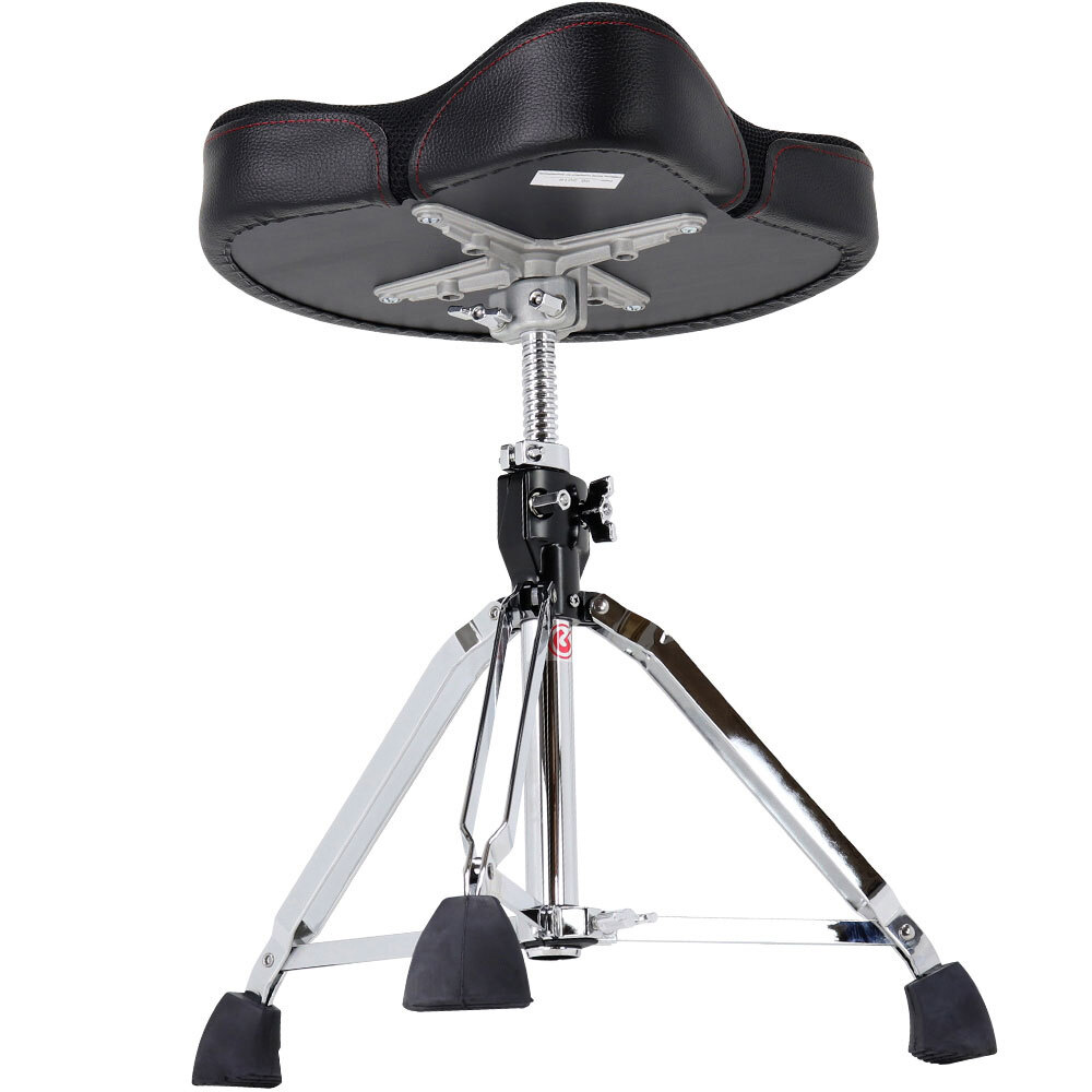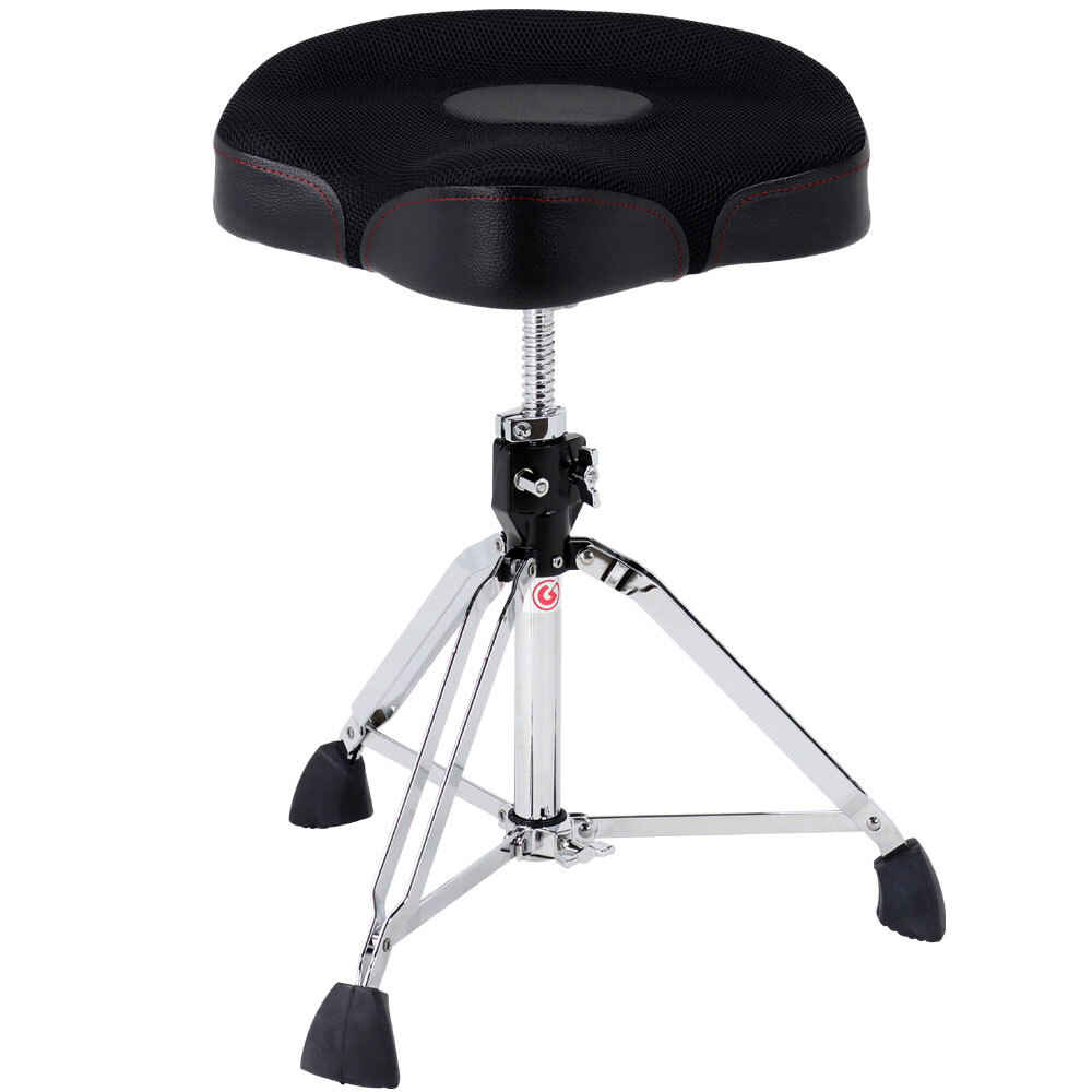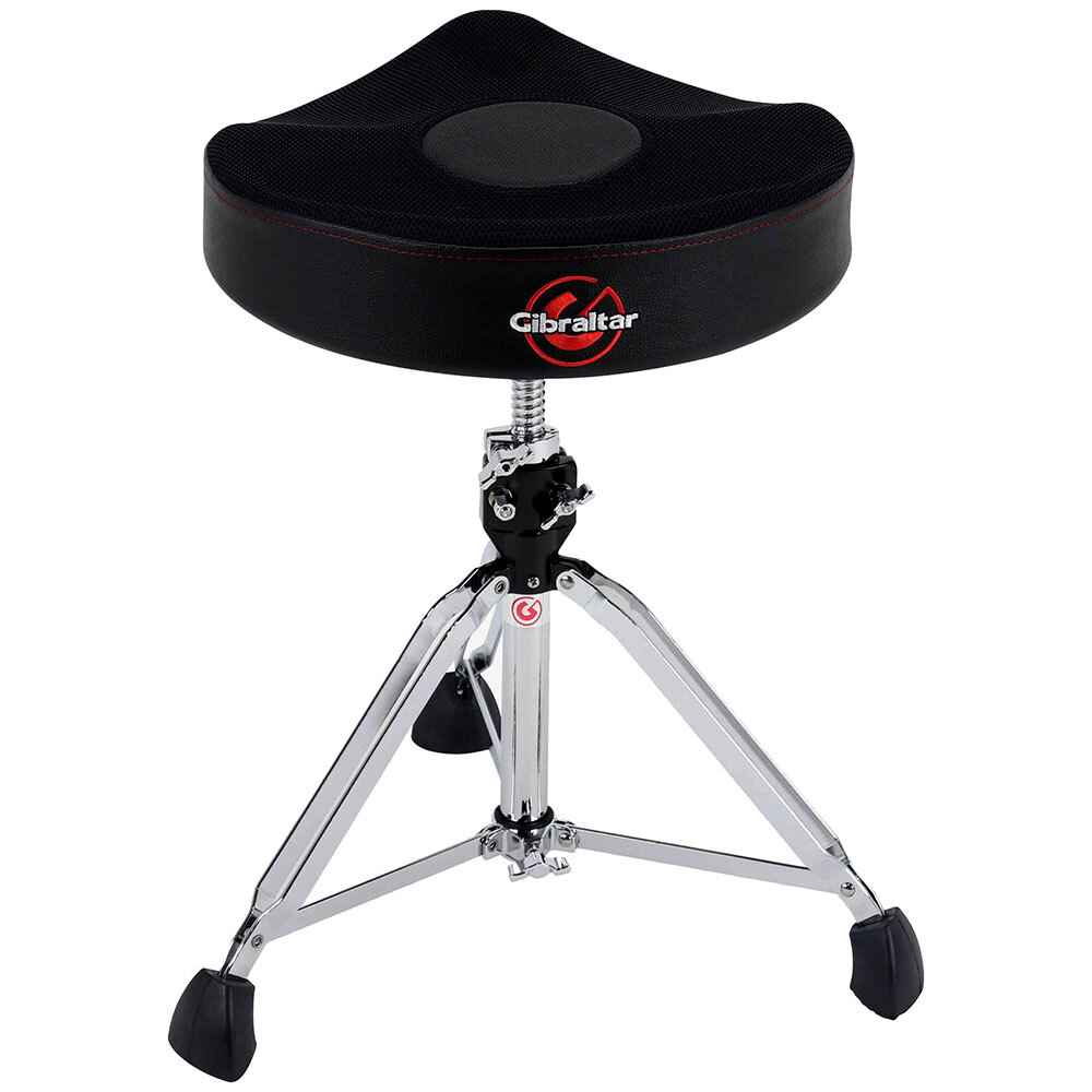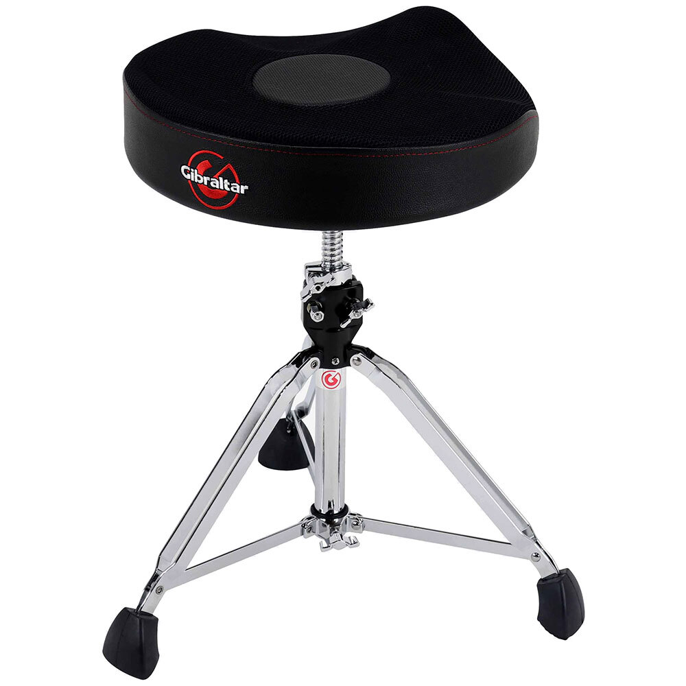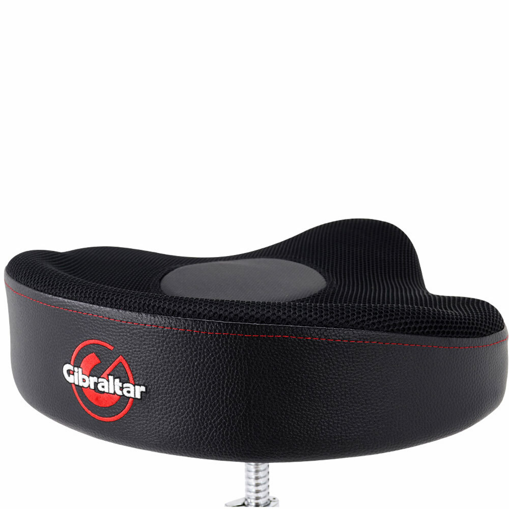 The 17" oversized Moto seat is molded memory foam contoured with thigh cutouts for ease of leg movement and covered with Airtech web mesh material for added comfort. Pro double-braced throne base with Gibraltar's Super foot and all-cast spindle height adjust system with wing nut height memory lock.
