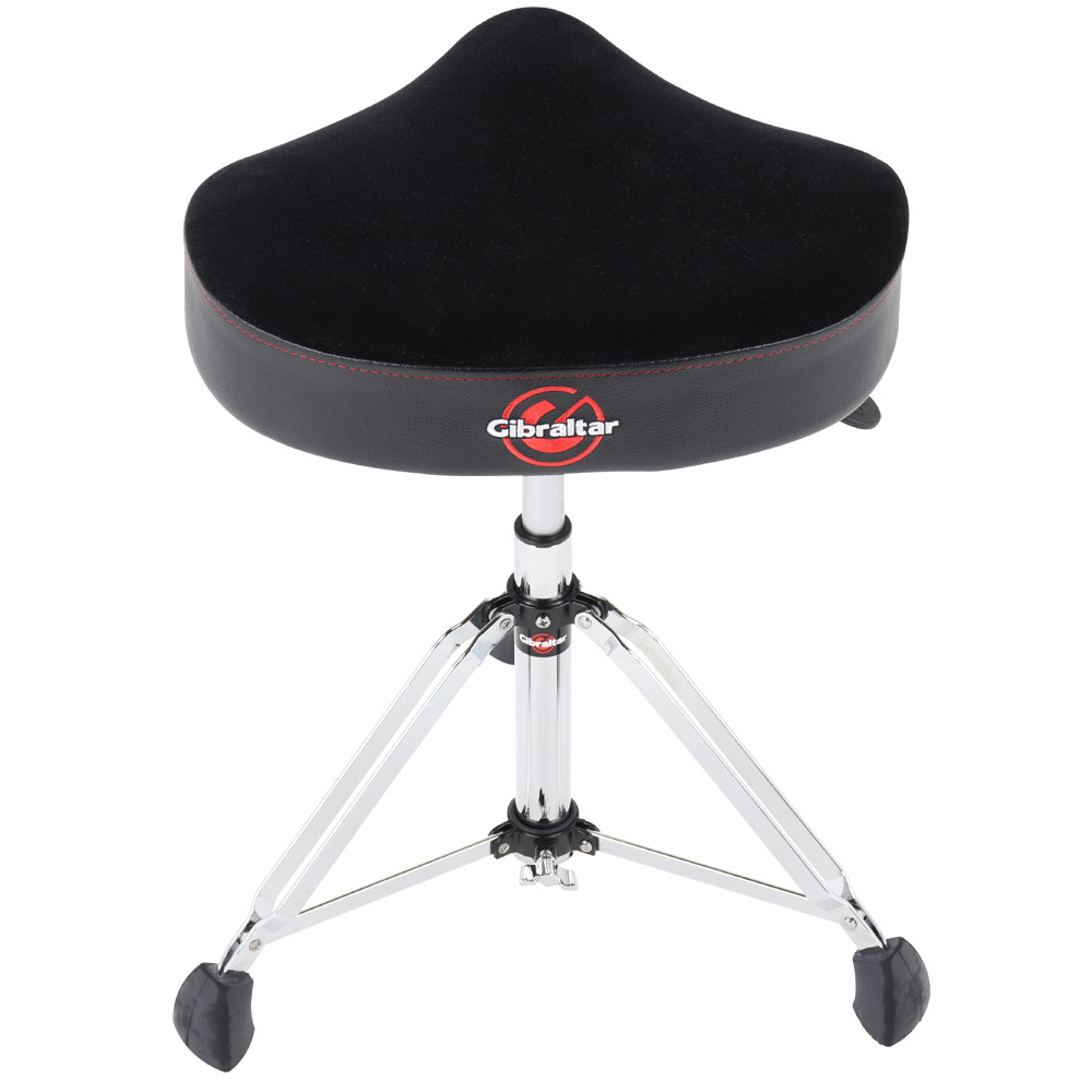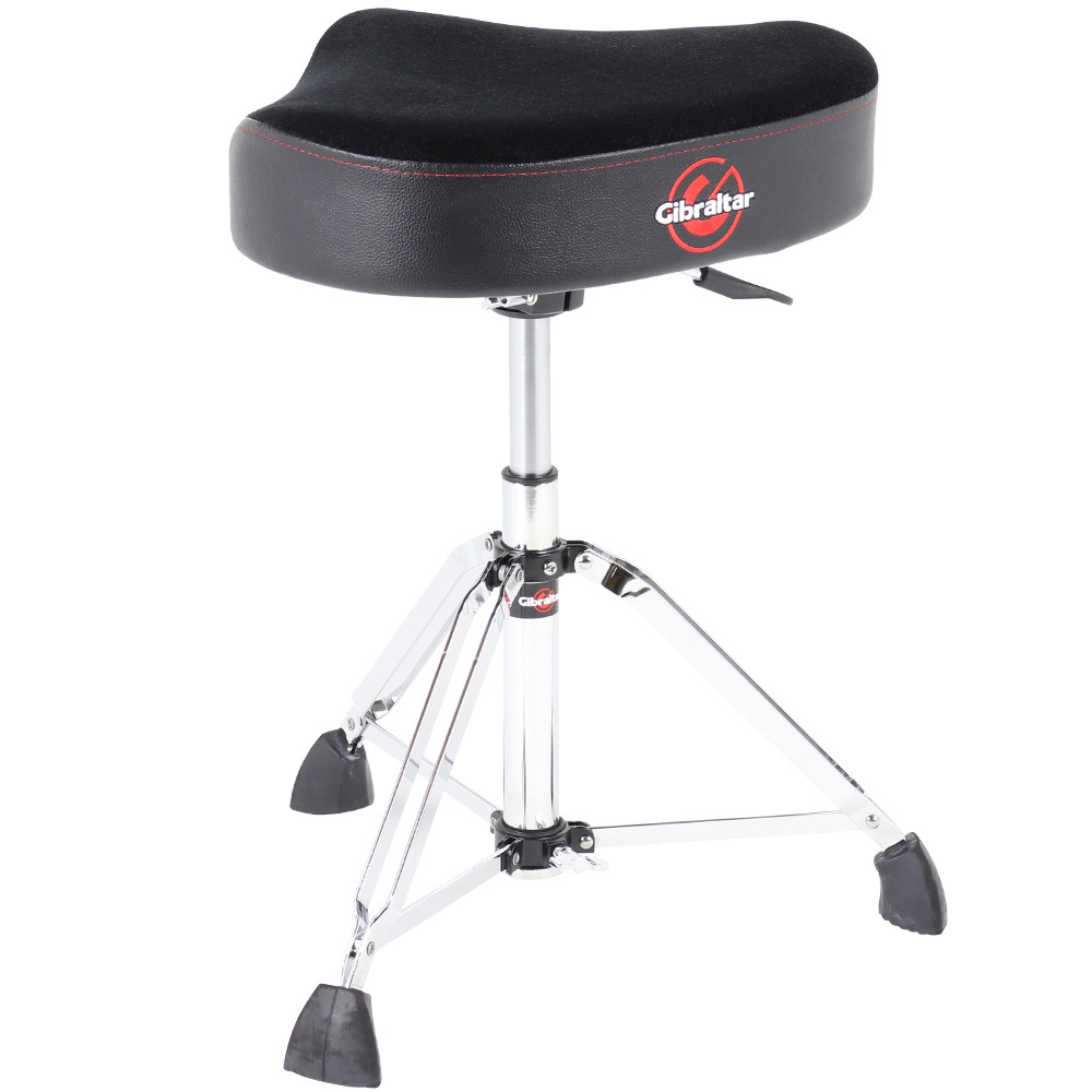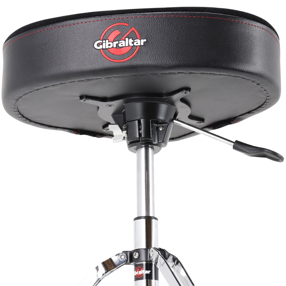 The seat is a plush, oversized saddle style with enhanced comfort and support. The height-adjust lever is now more conveniently located on the seat mounting bracket for more comfortable and easy-to-reach control. Equipped with a double-braced tripod, and Gibraltar's exclusive Super Foot, this base is as rock solid as possible. The throne seat offers a height range of 20" to 26". With the 9608HM, you'll find your sweet spot quickly and effortlessly to provide maximum playing time without discomfort.
