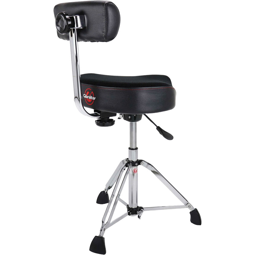 A large saddle seat meets a hydraulic base and backrest in a drum throne that's built for the road.