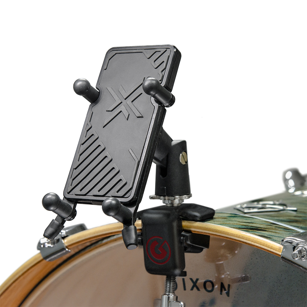 - Attach your smart phone to your bass drum hoop for easy touch screen access and discreet placement.