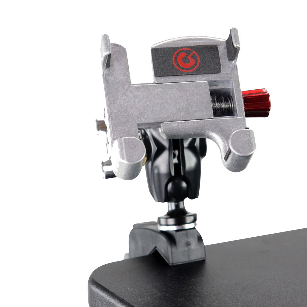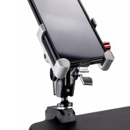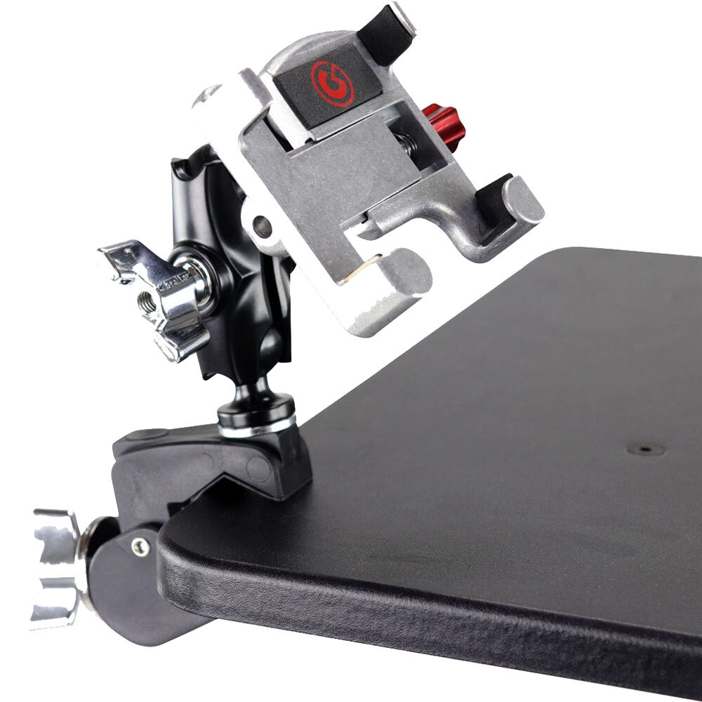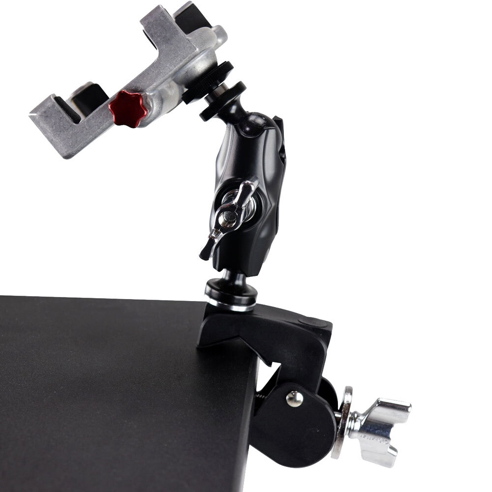 The Dual Adjust Smartphone C Clamp Table/Stand Mount offers a super stable C Clamp mounting system, along with its adjustable thumb screw width adjustment, enables you to mount to a table or stand securely without slippage from vibration. The Dual Adjust system allows quick adjustment and infinite customization for your unique positioning. Drummer tested and proven durability.