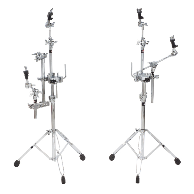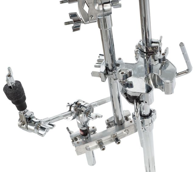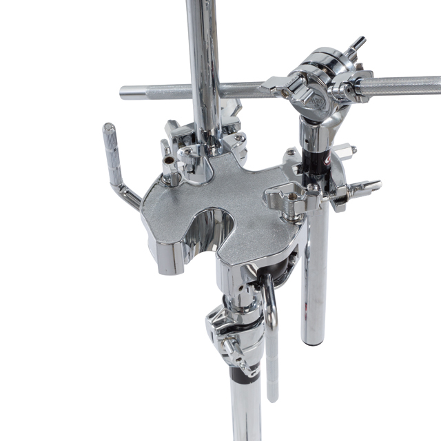 Quad platform mounts two 9.5mm ball L-Rods and two cymbal mounting clamps