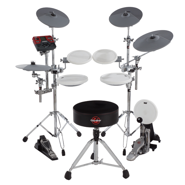 The 6700EPK Hardware pack mounts a five-piece E-drum kit on two stands with platform mounts to create a simple, clean stand setup.